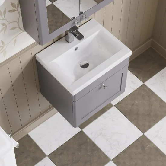 Nuie Classique 500mm Satin Grey Wall Hung 1 Drawer Vanity Basin Unit Including 1 Tap Hole Basin