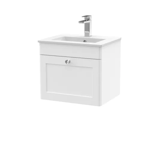 Nuie Classique 500mm Wall Hung Vanity Unit with 1 Drawer & 1 Tap Hole Basin