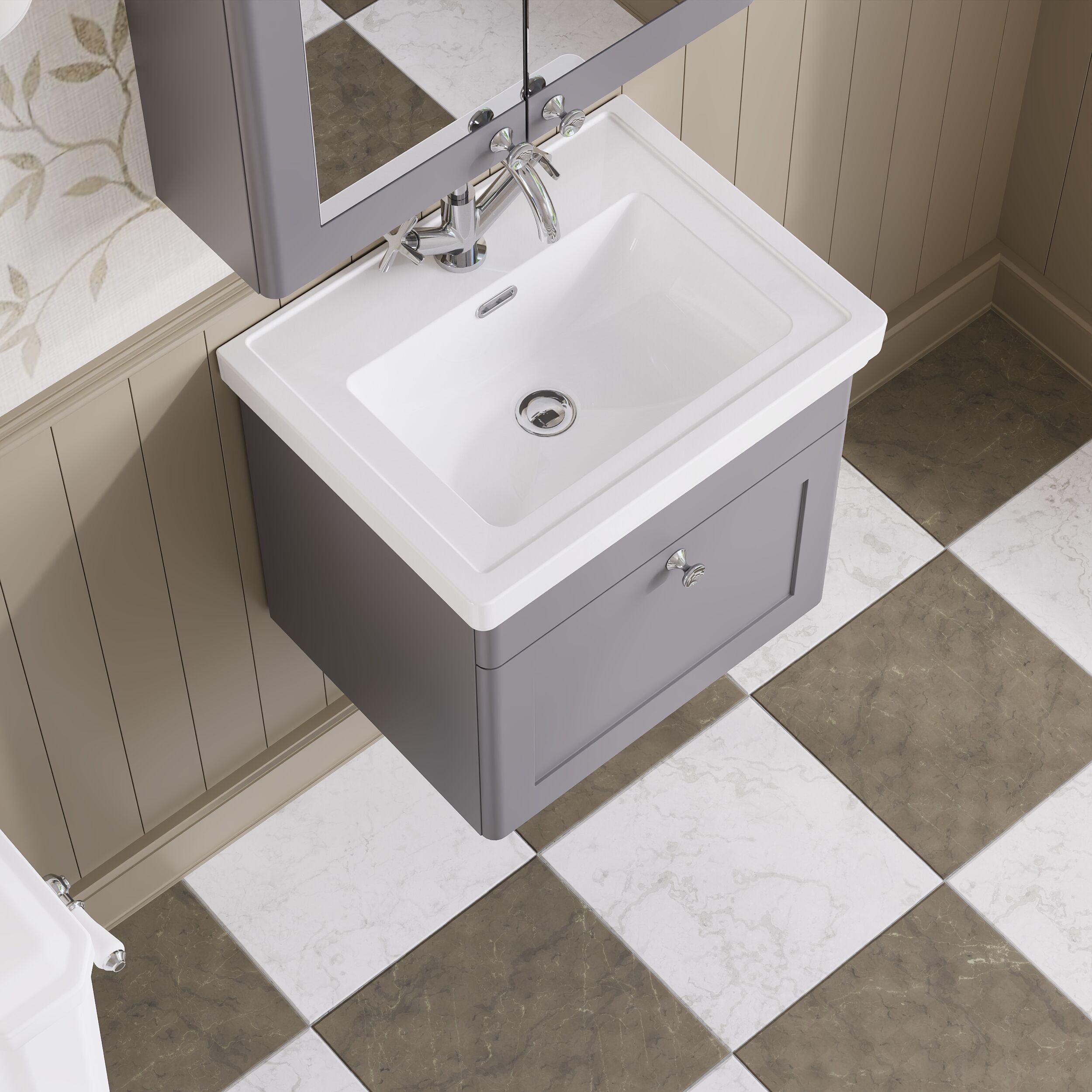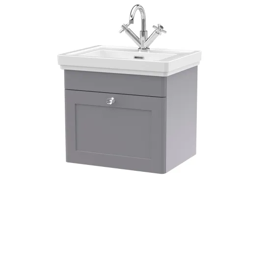 nuie Classique Wall Hung 1 Drawer Vanity Basin Unit & 1 Tap Hole Fireclay Basin, 500mm - Satin Grey