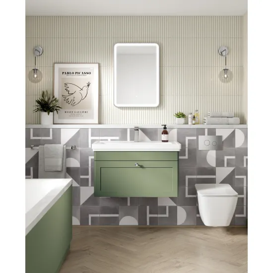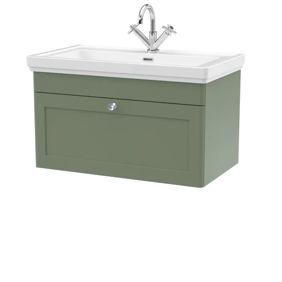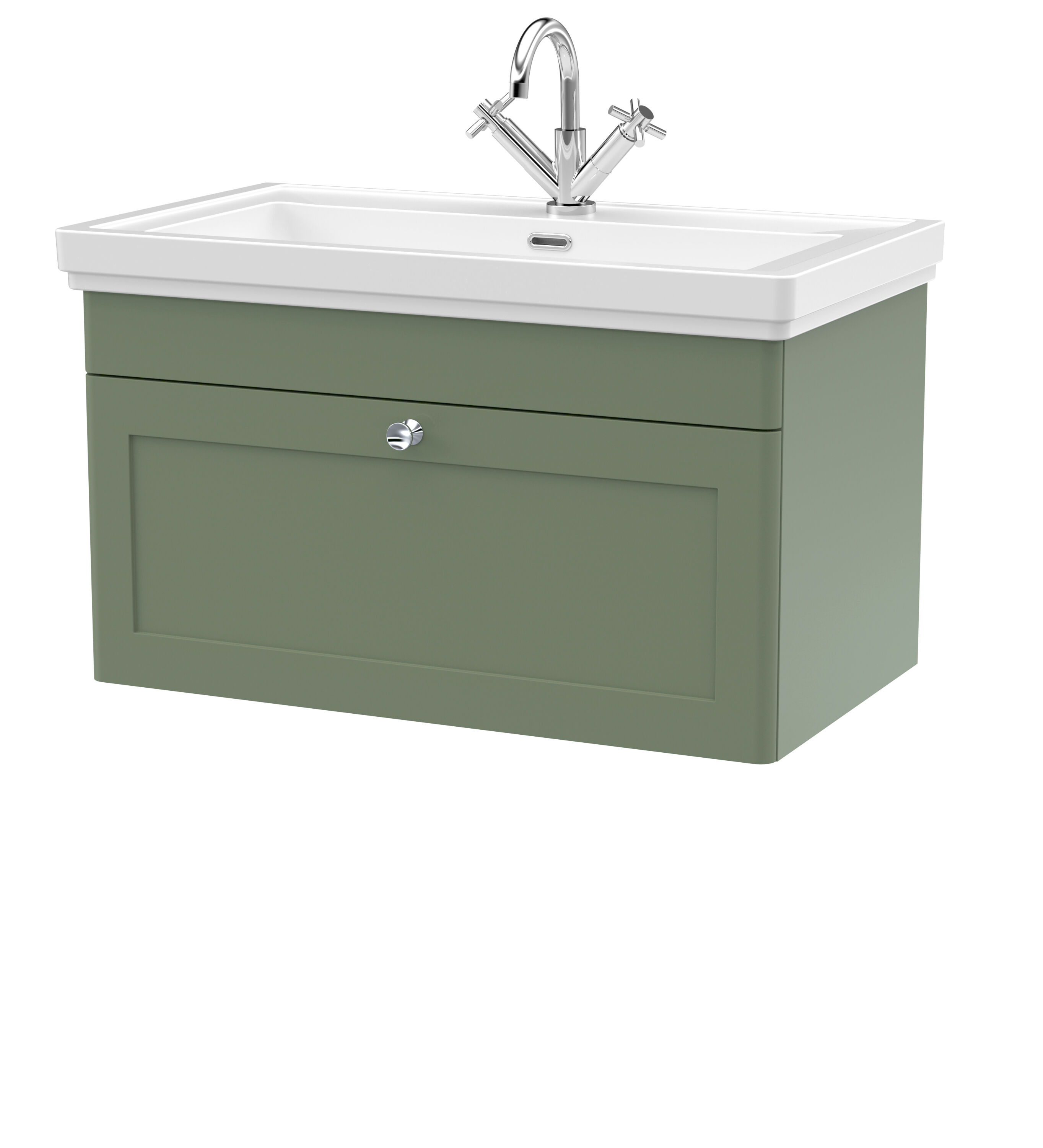 nuie Classique Wall Hung 1 Drawer Vanity Basin Unit & 1 Tap Hole Fireclay Basin, 800mm - Satin Green