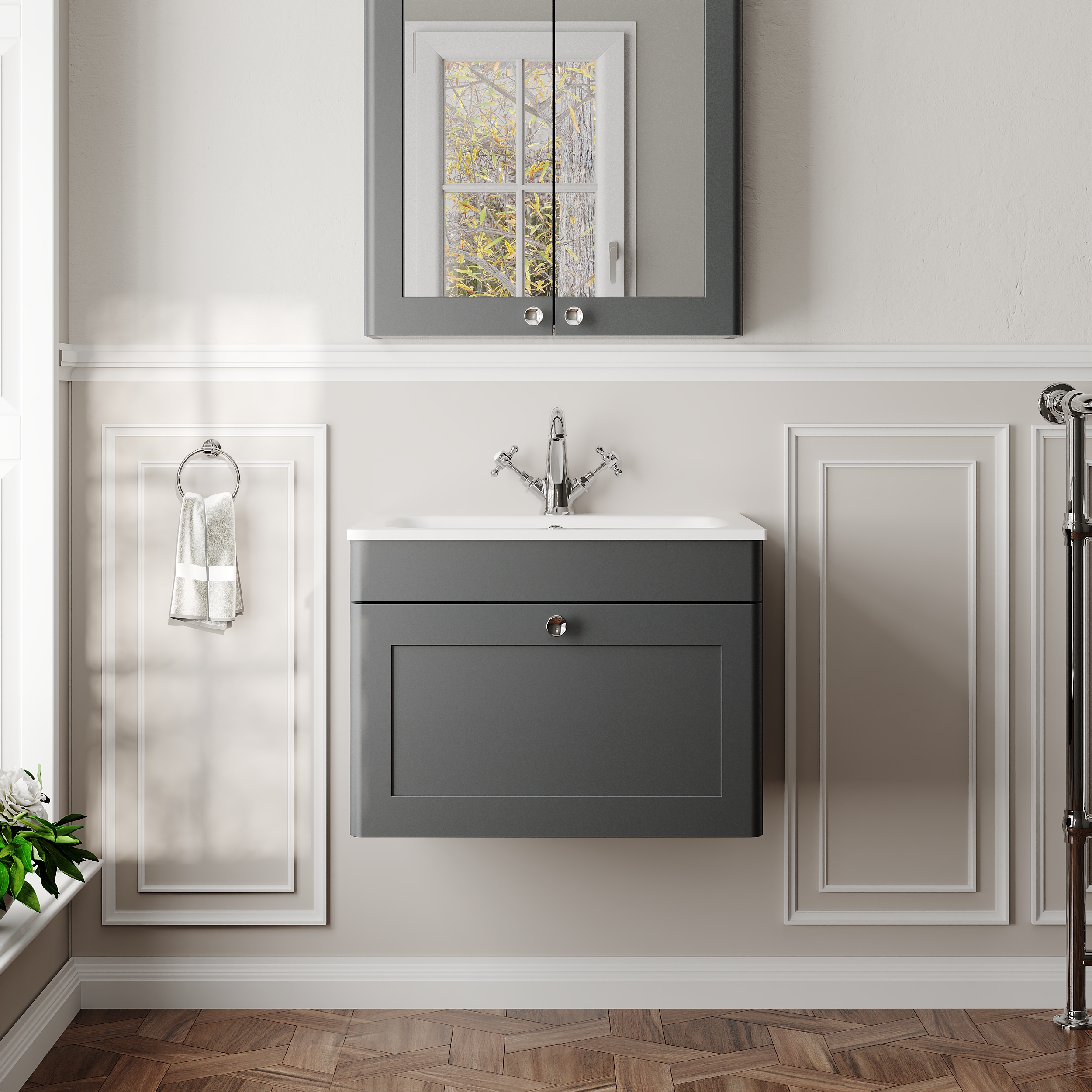 Classique Wall Hung 1 Drawer Vanity Basin Unit & 1 Tap Hole Stone Basin, 600mm