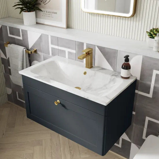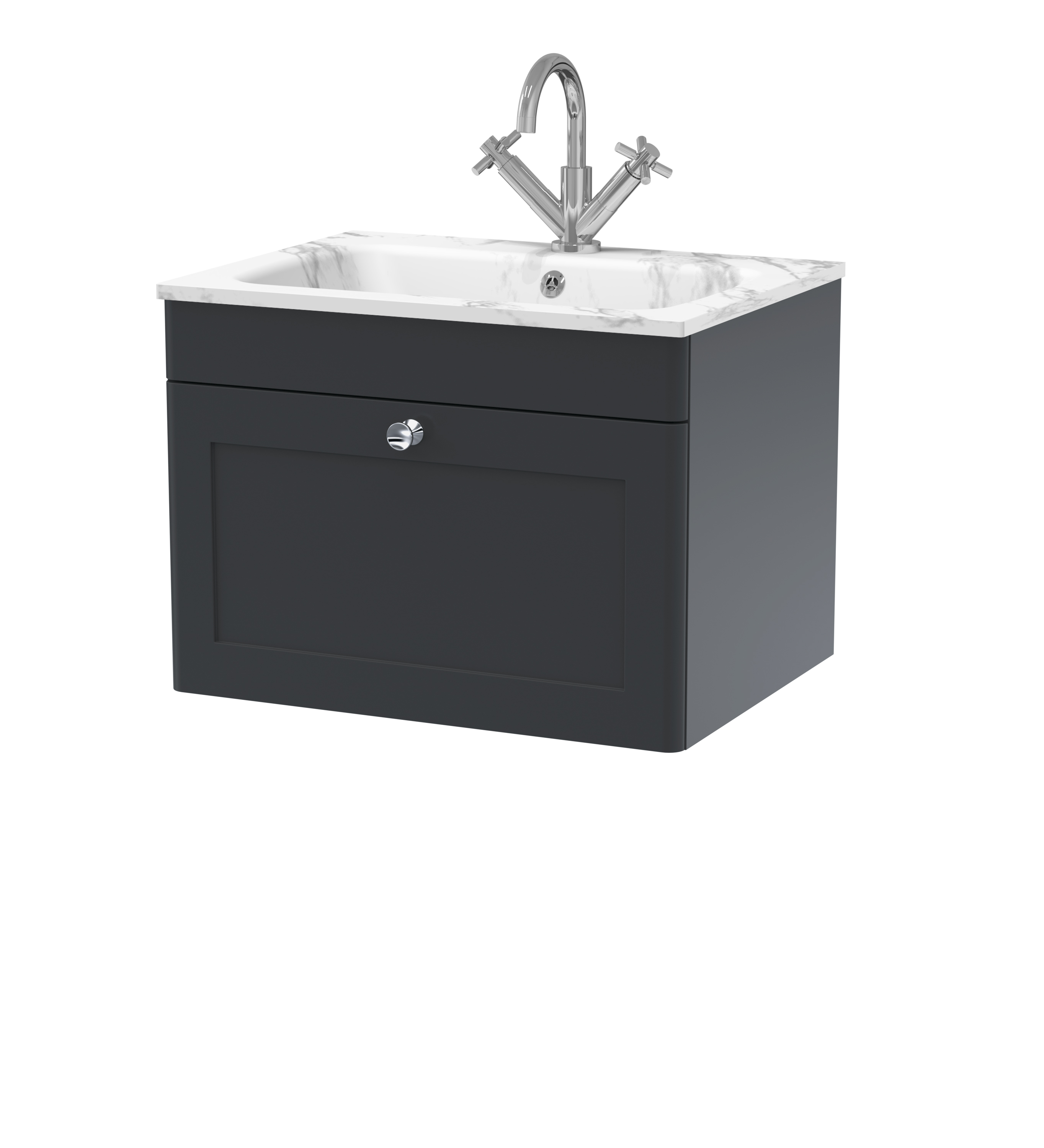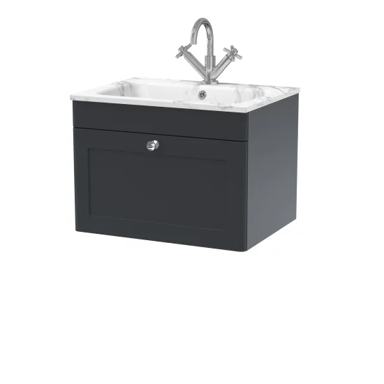 Classique Wall Hung 1 Drawer Vanity Basin Unit & 1 Tap Hole Stone Basin, 600mm