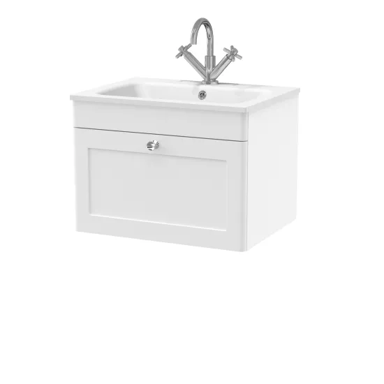 Classique Wall Hung 1 Drawer Vanity Basin Unit & 1 Tap Hole Stone Basin, 600mm