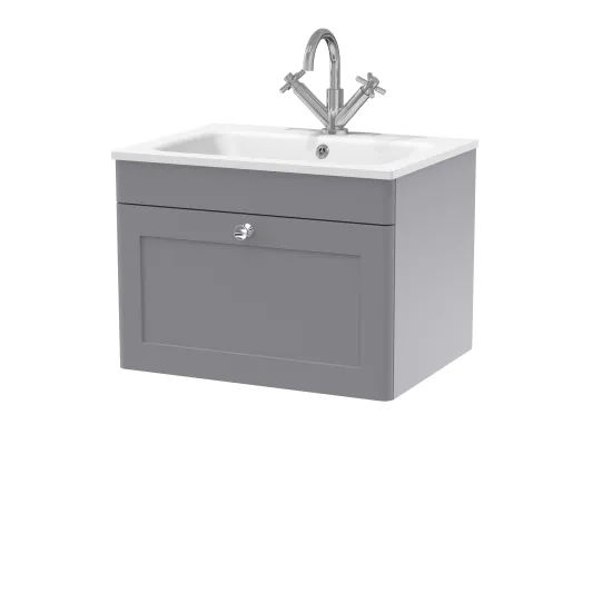 nuie Classique Wall Hung 1 Drawer Vanity Basin Unit & 1 Tap Hole Stone Basin, 600mm - Satin Grey