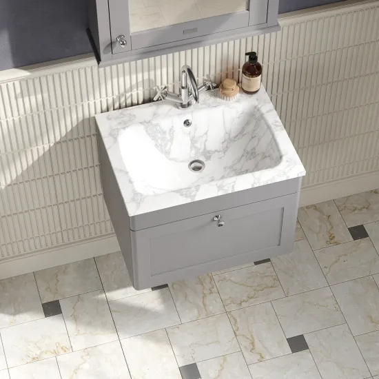 Classique Wall Hung 1 Drawer Vanity Basin Unit & 1 Tap Hole Stone Basin, 600mm