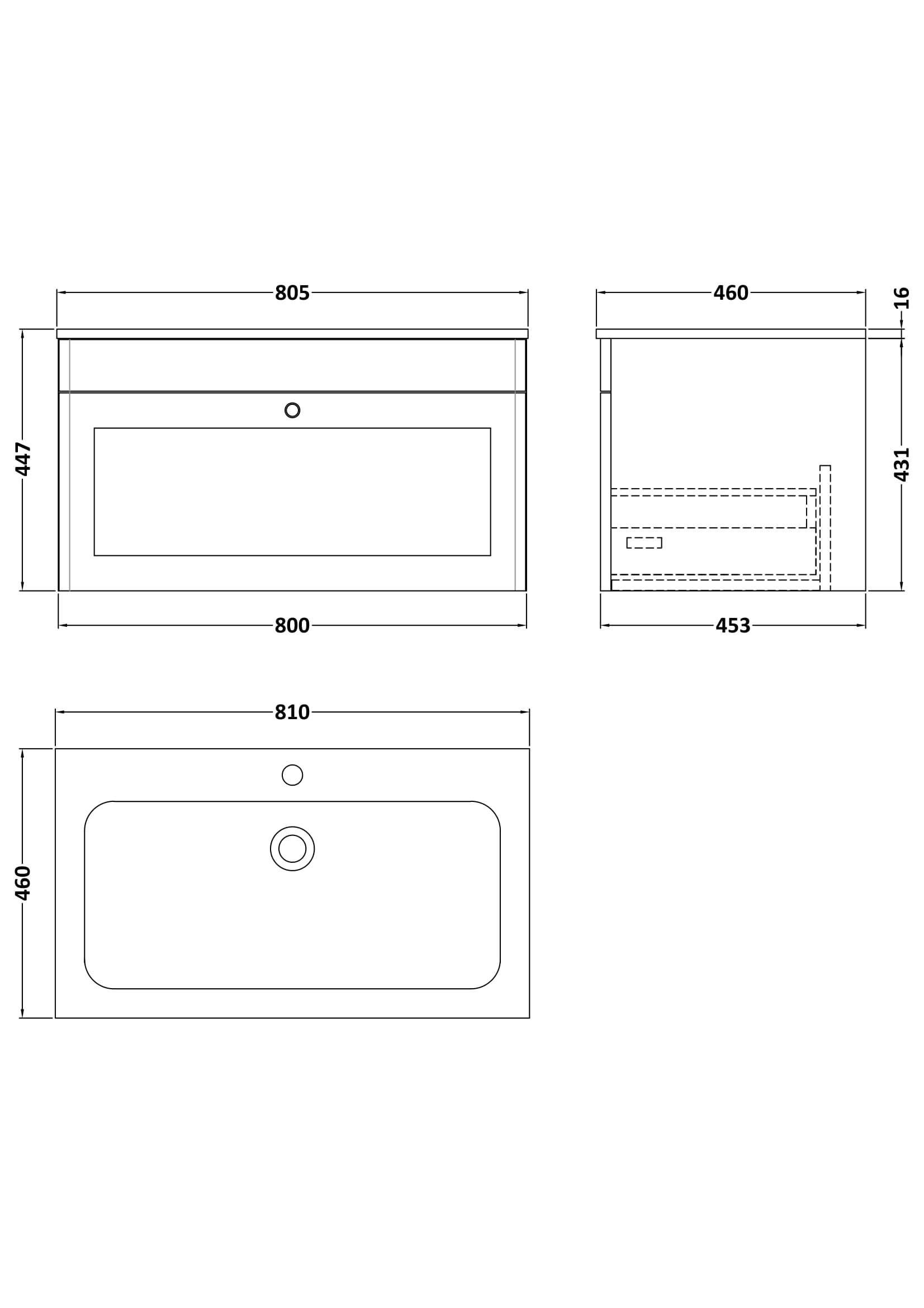 Classique Wall Hung 1 Drawer Vanity Basin Unit & 1 Tap Hole Stone Basin, 800mm