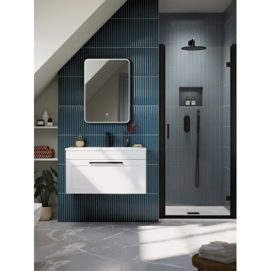 nuie Classique Wall Hung 1 Drawer Vanity Basin Unit & 1 Tap Hole Stone Basin, 800mm - Satin White