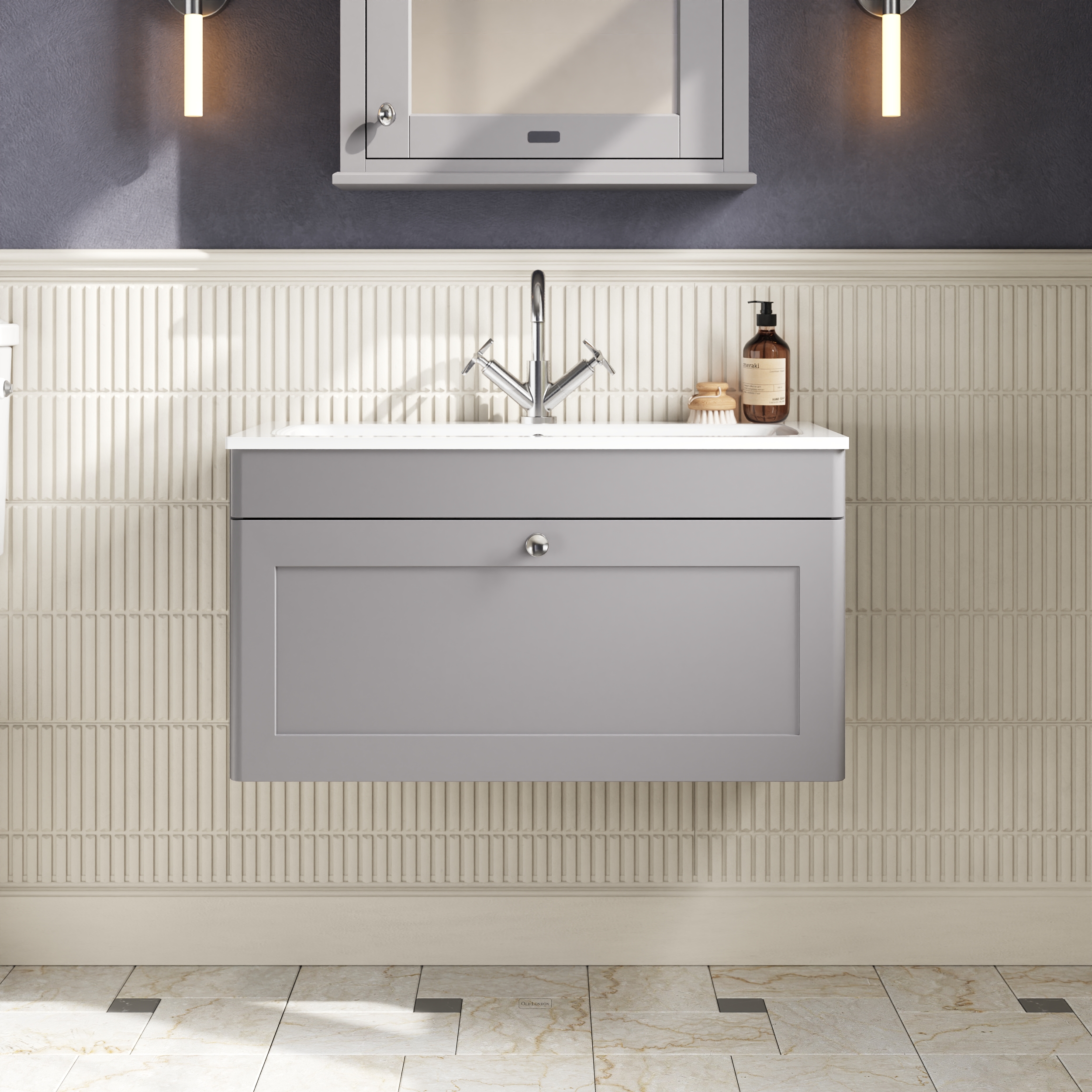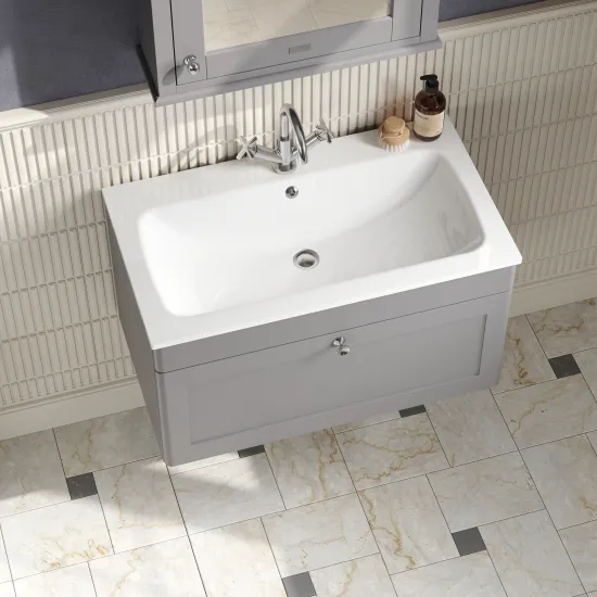 nuie Classique Wall Hung 1 Drawer Vanity Basin Unit & 1 Tap Hole Stone Basin, 800mm - Satin Grey