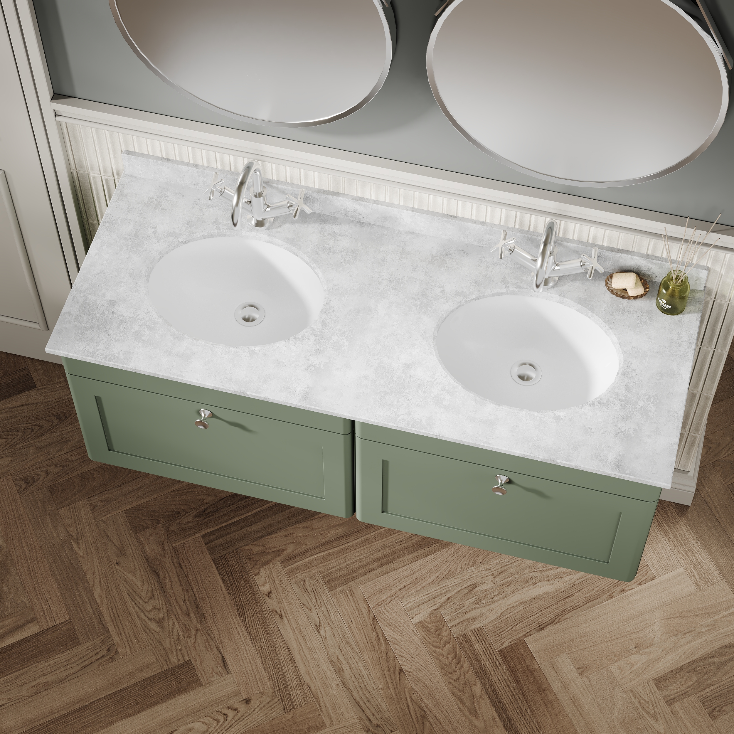 Nuie Classique 600mm 2 Door Satin Green Wall Hung Mirror Cabinet With Handles