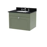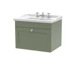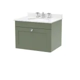 Nuie Classique 600mm Satin Green Wall Hung 1 Drawer Vanity Unit with 3 Tap Hole Basin