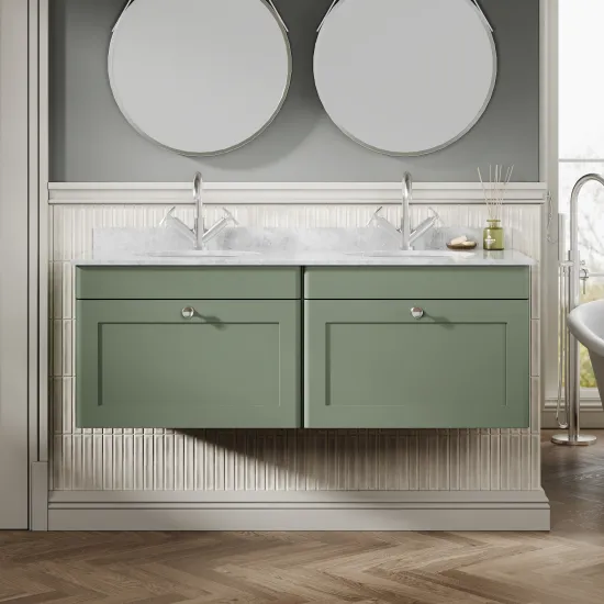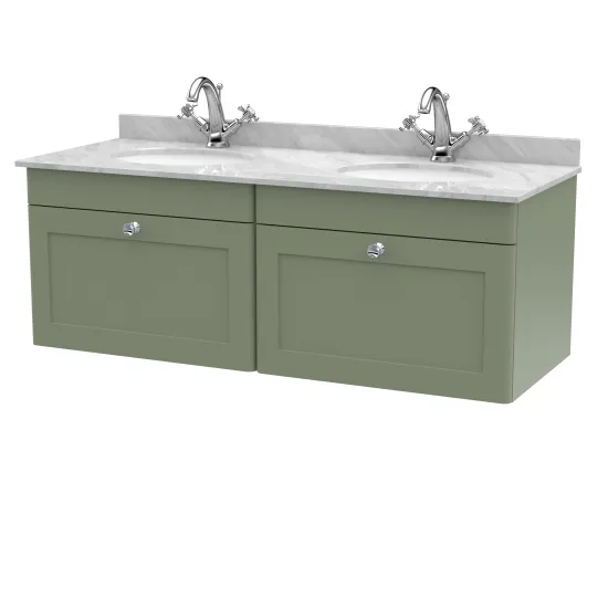 Nuie Classique 600mm Satin Green Wall Hung Vanity Unit With 3 Tap Hole Marble Top and Round Basin