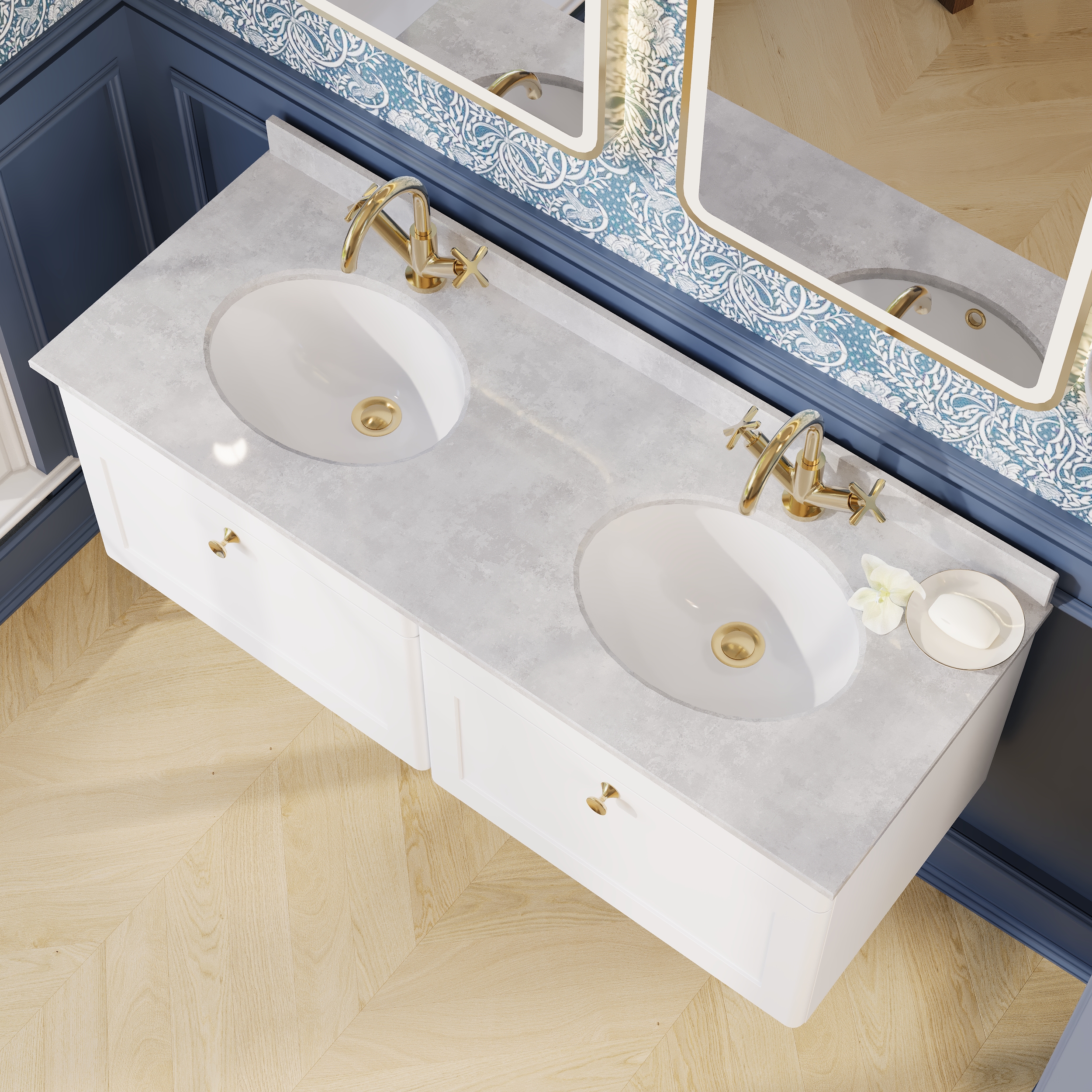 nuie Classique Wall Hung 2 Drawer Unit & 1 Tap Hole Marble Top with Oval Basin, 1200mm - Satin White/Grey
