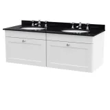 Nuie Classique 1220mm Satin White Wall Hung 2 Drawer Unit With Underslung Round Basin & 6 Tap Holes