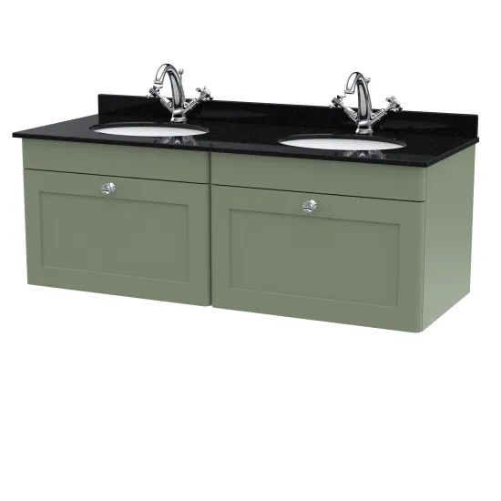 Nuie Classique 1220mm Satin Green 6 Tap Hole Wall Hung 2 Drawer Vanity Unit with Basin