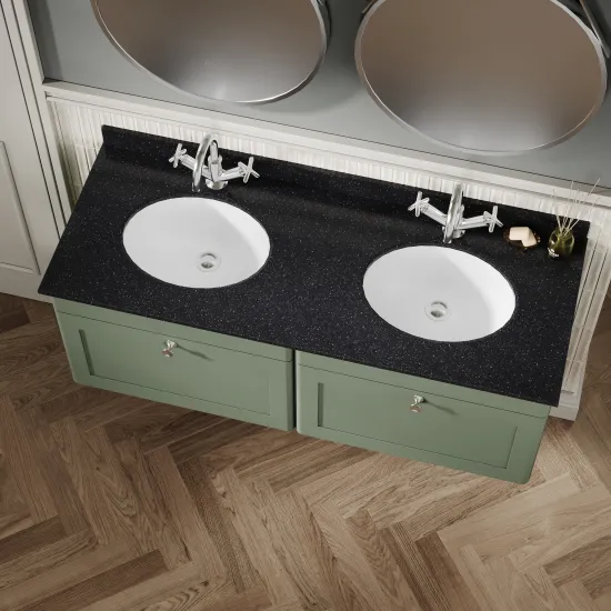 nuie Classique Wall Hung 2 Drawer Unit & 1 Tap Hole Marble Top with Oval Basin, 1200mm - Satin Green/Black