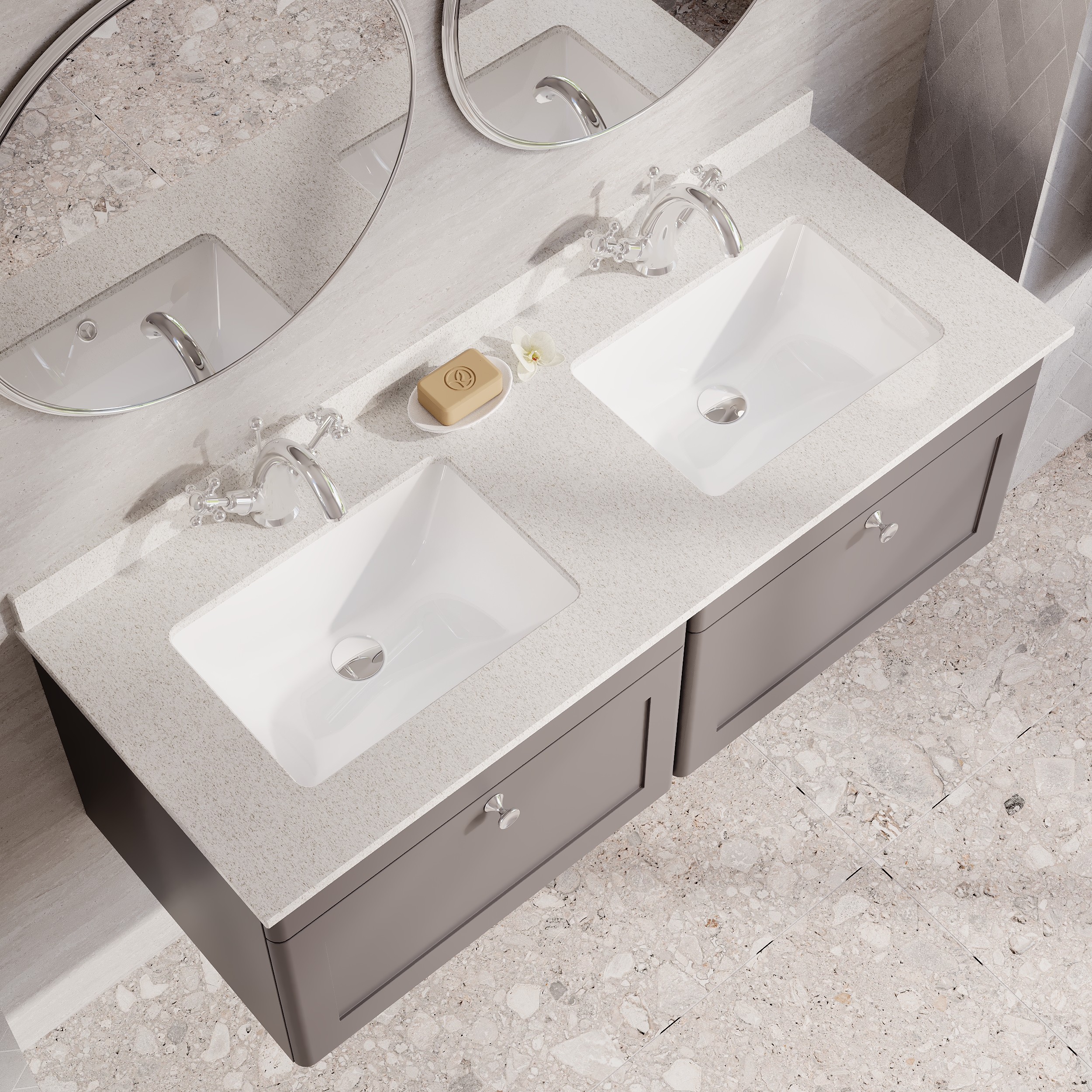 nuie Classique Wall Hung 2 Drawer Unit & 1 Tap Hole Marble Top with Square Basin, 1200mm - Satin Grey/White