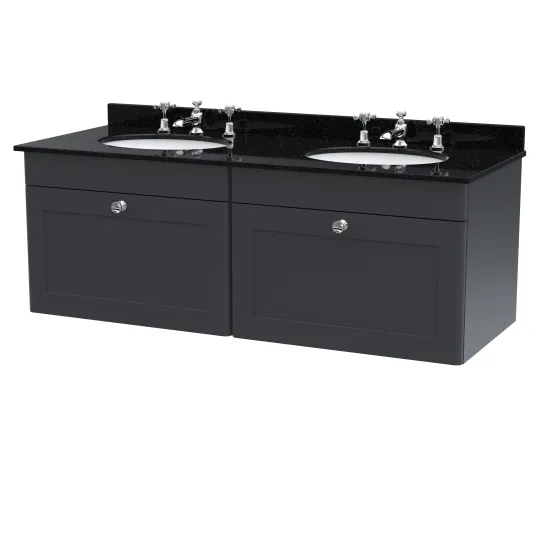 Nuie Classique 1220mm Soft Black Wall Hung 2 Drawer Vanity Unit With Basin, With 2 Tap Holes
