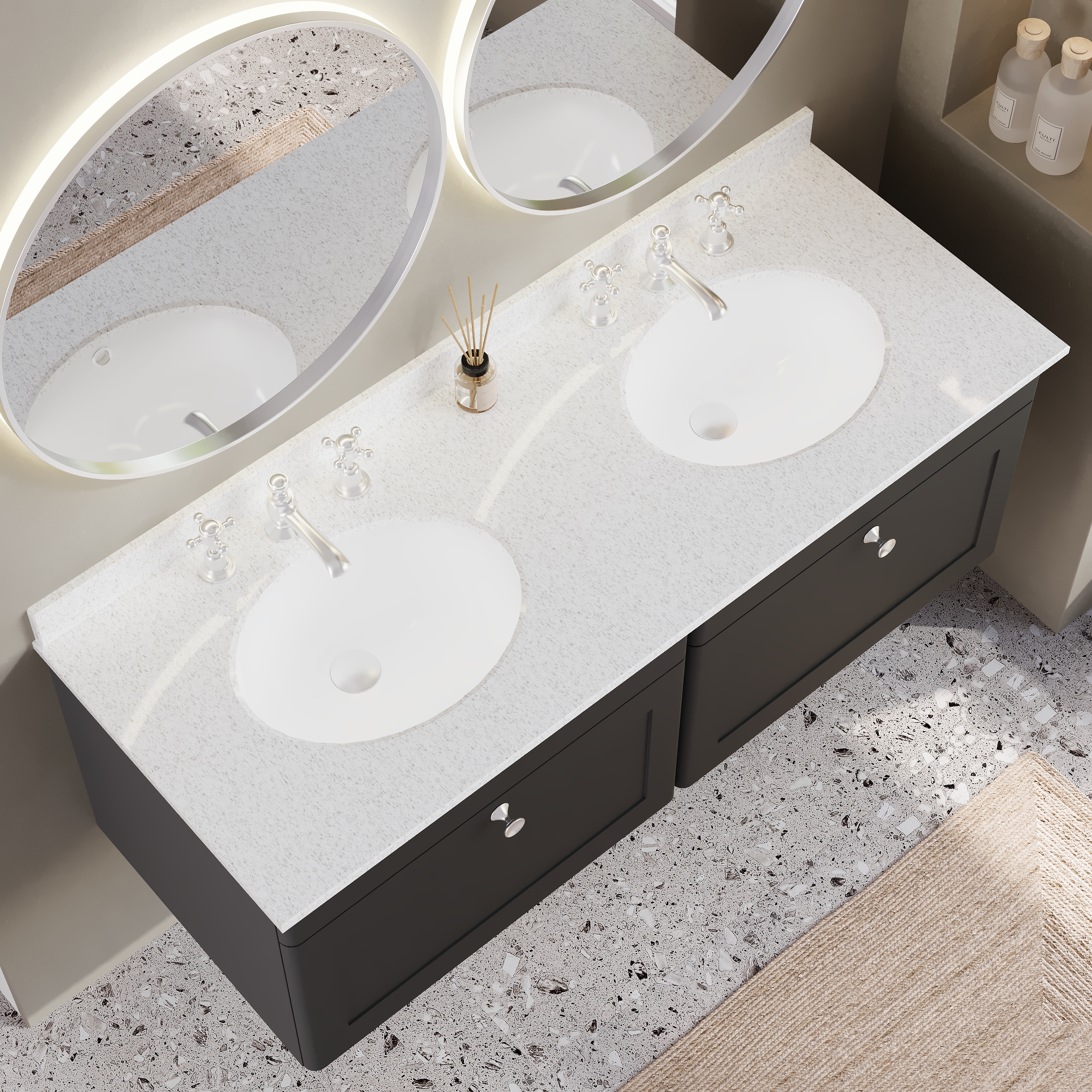 nuie Classique Wall Hung 2 Drawer Unit & 3 Tap Hole Marble Top with Oval Basin, 1200mm - Soft Black/White