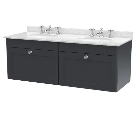 Nuie Classique 1200mm Wall Hung 2 Drawer Vanity Unit With Under Slung Basin, 6 Tap Holes & Backsplash