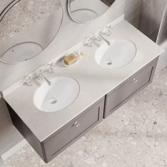 Nuie Classique 1220mm Satin Grey Wall Hung 2 Drawer Vanity Unit With Basin & Backsplash