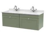 Nuie Classique 1220mm Satin Green Wall Hung 2 Drawer Vanity Unit with Basin, 2 Tapholes & Backsplash