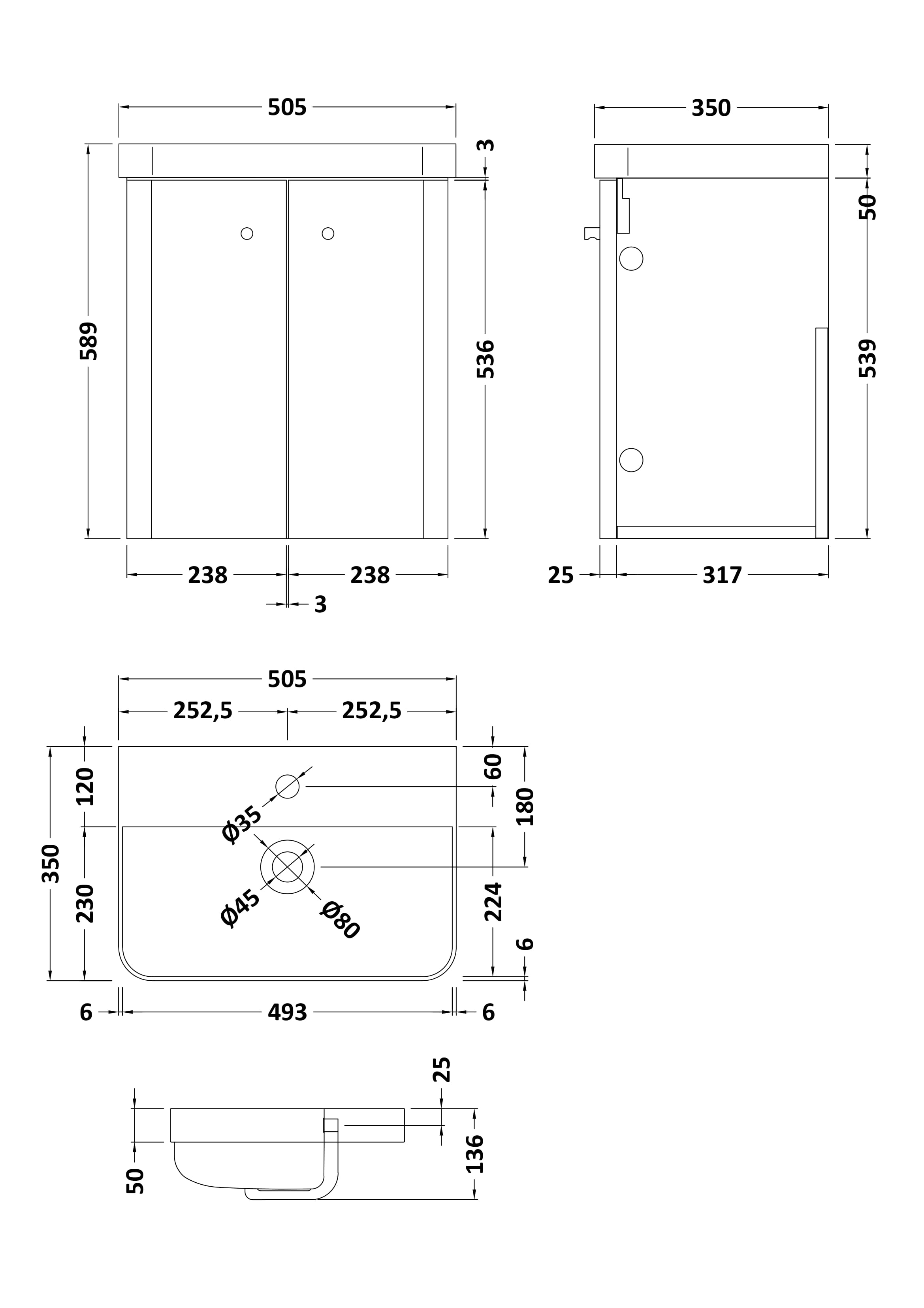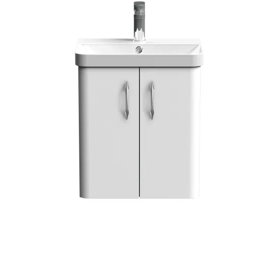 Nuie Core 479mm Wall Hung 2 Door Vanity Unit & Basin with Soft Close Doors, 1 Tap Hole