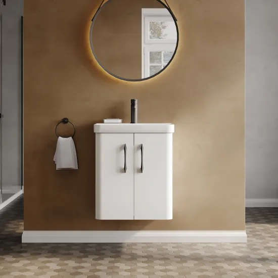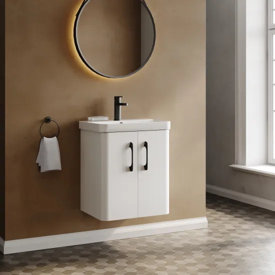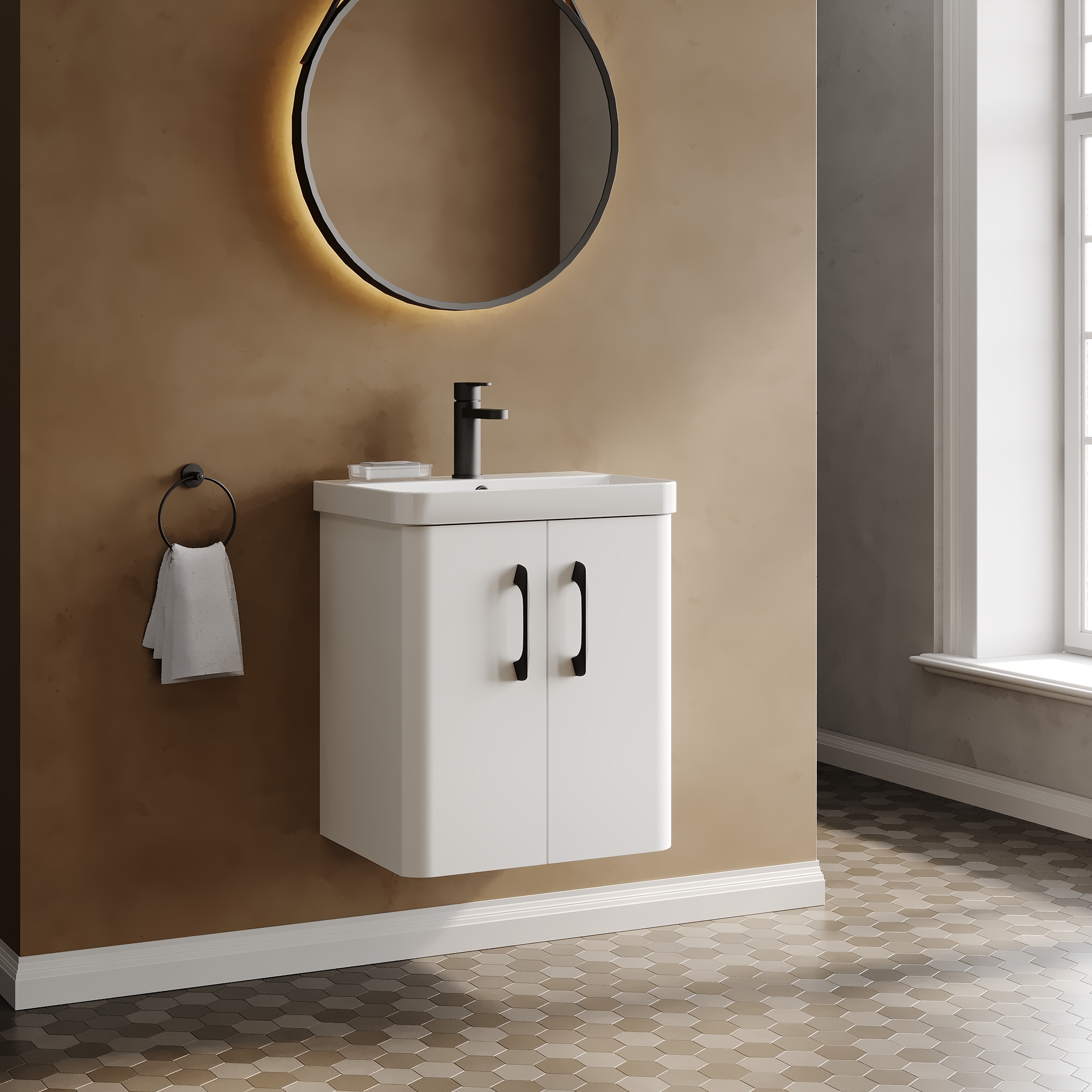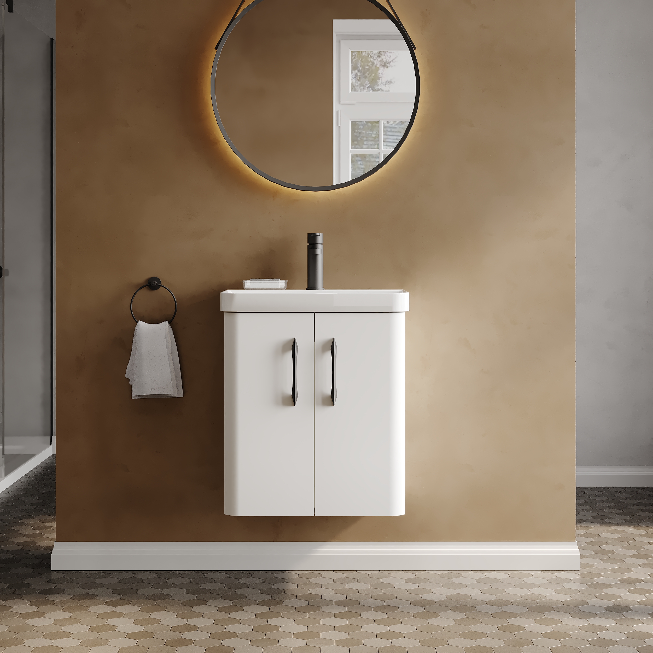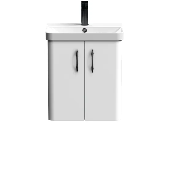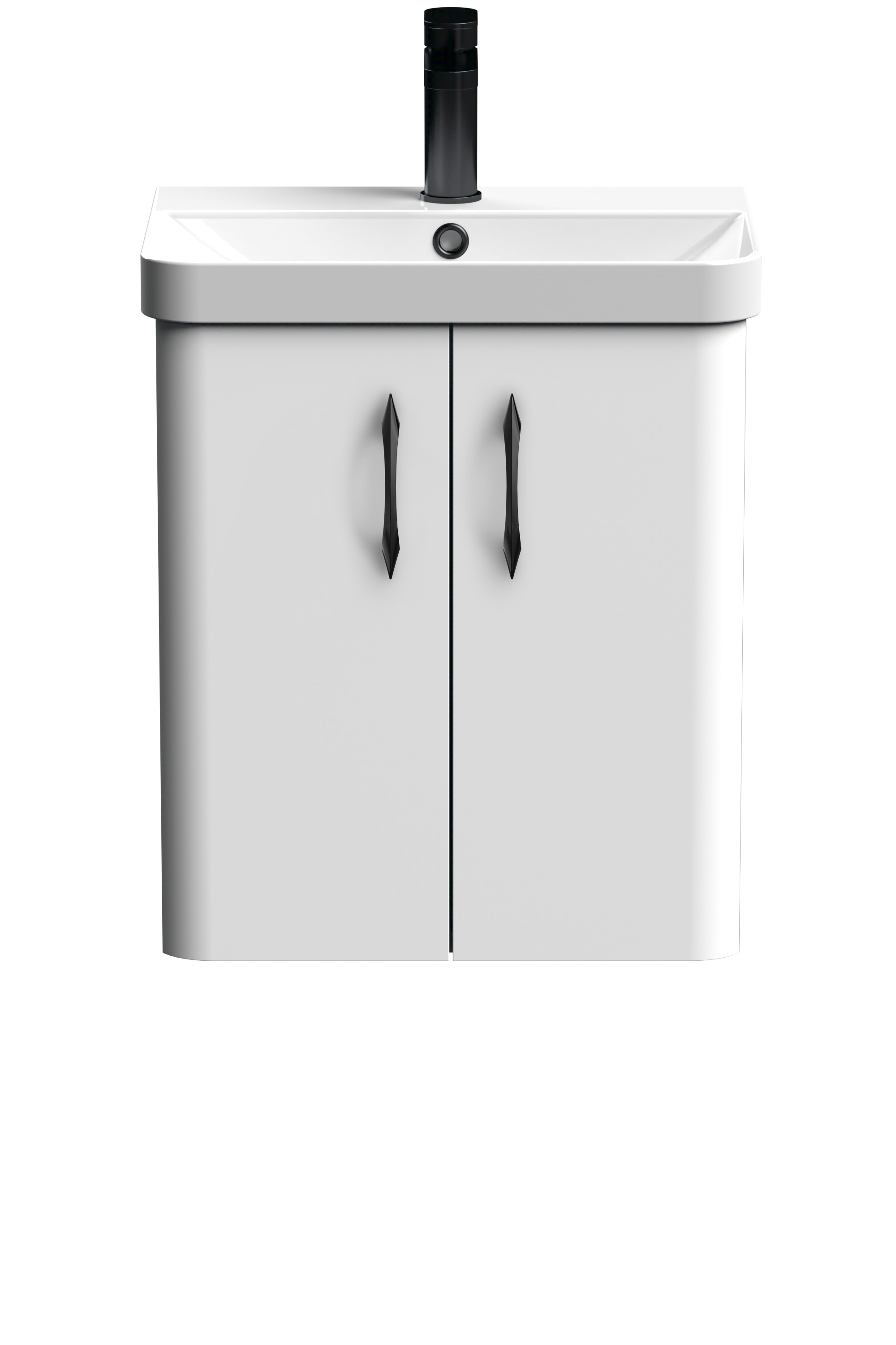 Nuie Core 500mm Gloss White Wall Hung 2 Door Vanity Unit & Basin With Soft Close Doors & 1 Tap Hole