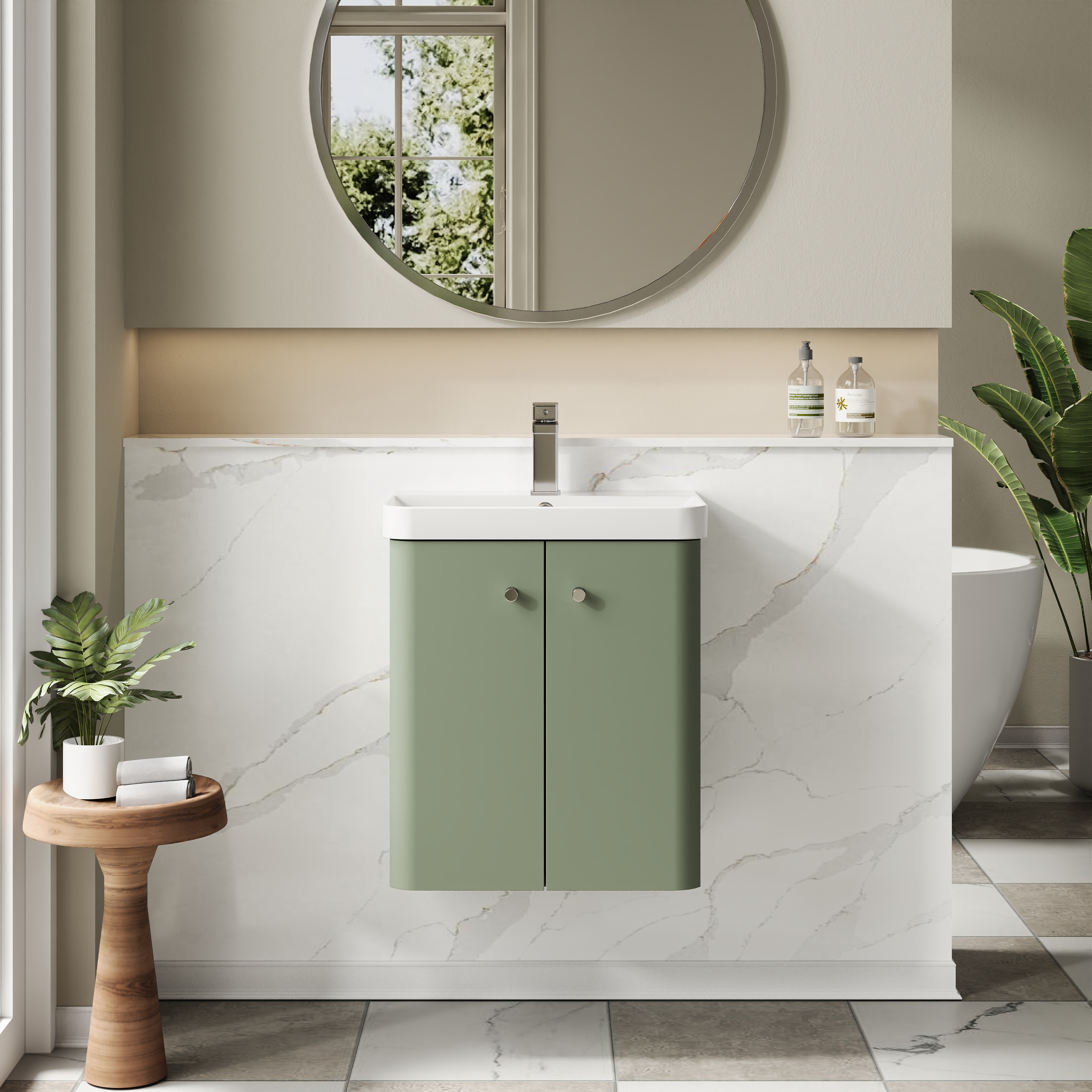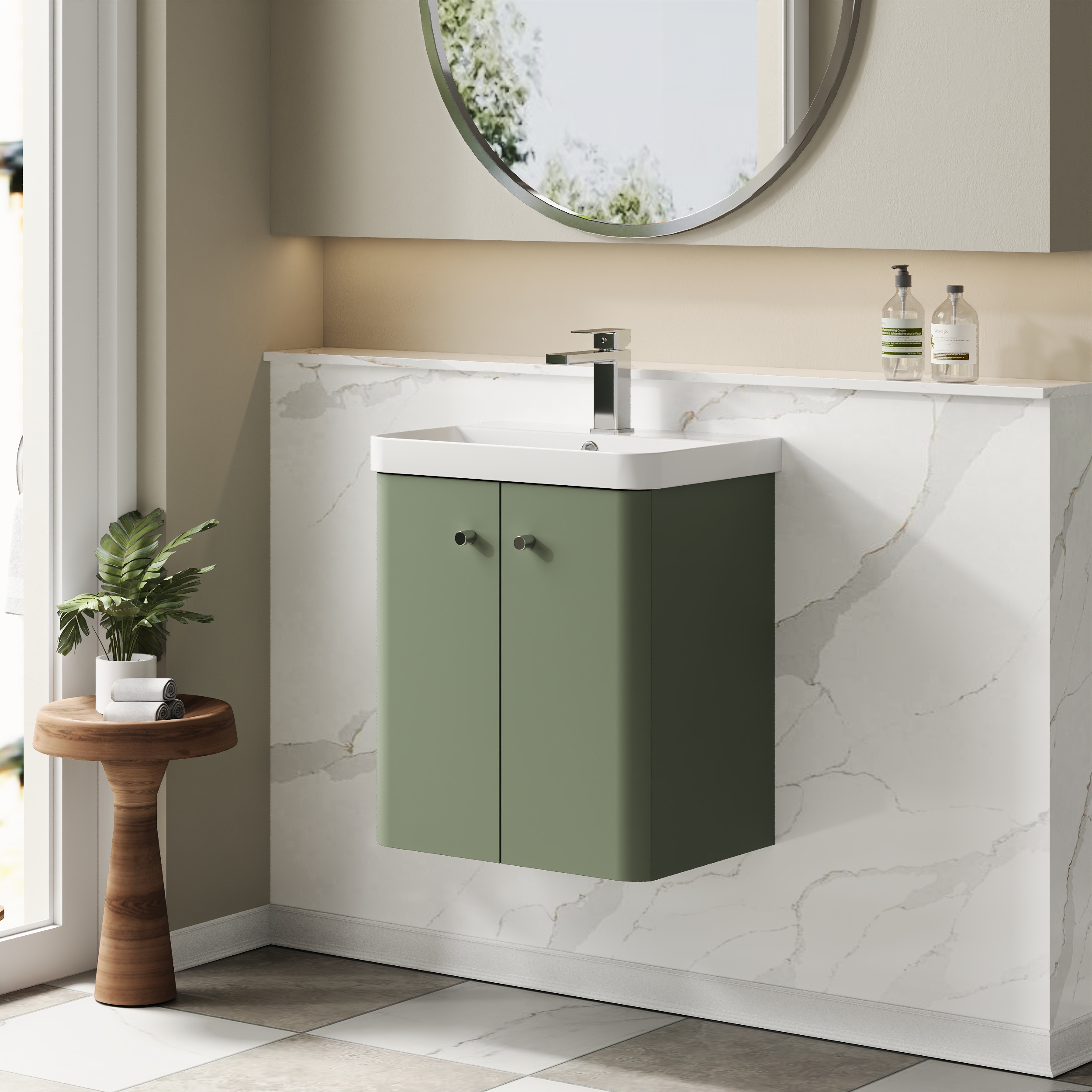 Nuie Core 400mm Satin Green Wall Hung 1 Door Vanity Unit With Basin
