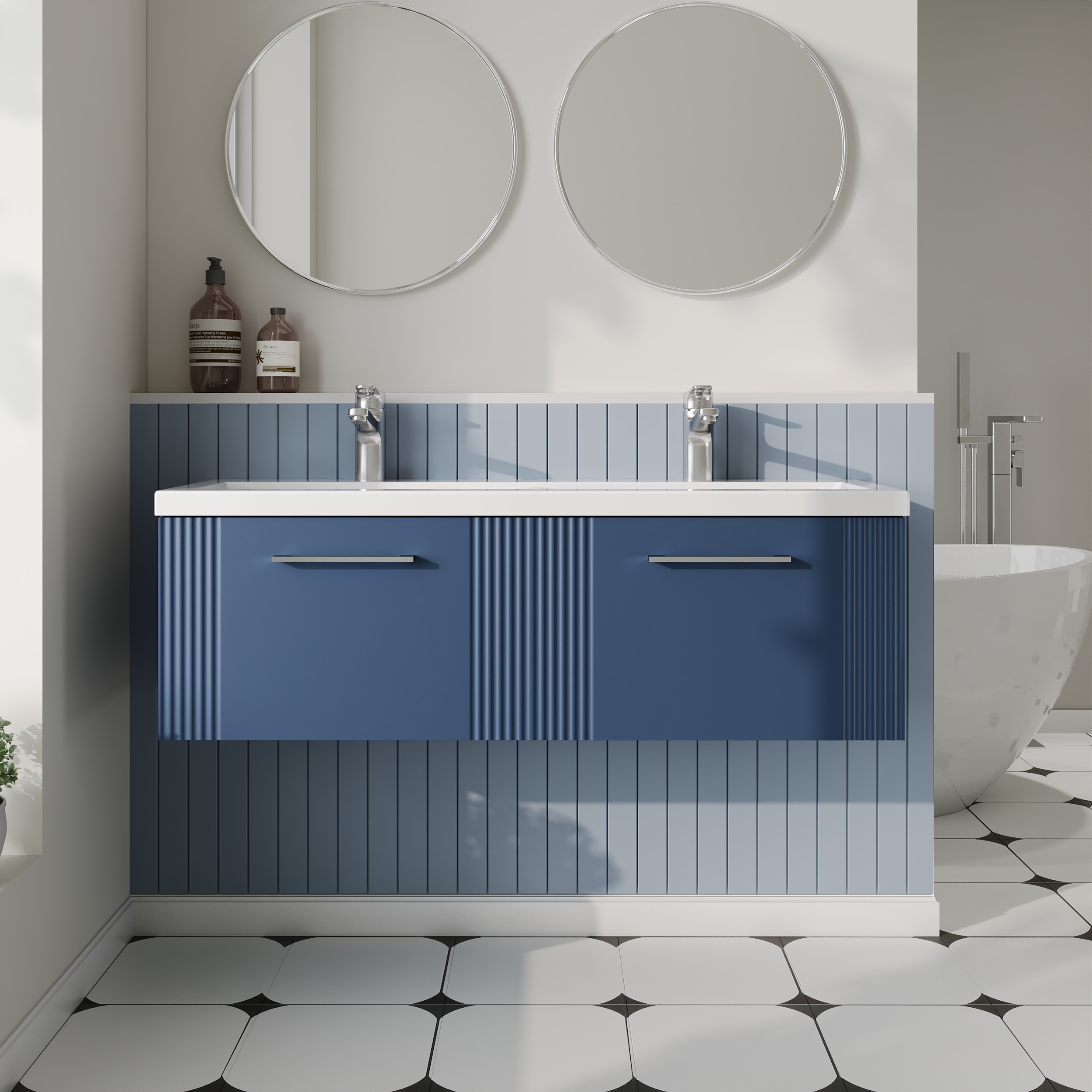 nuie Deco 1200mm Wall Hung 2-Drawer Vanity & Double Basin - Satin Blue