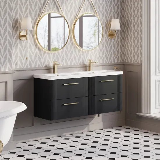 nuie Deco 1200mm Wall Hung 4-Drawer Vanity & Double Basin - Soft Black