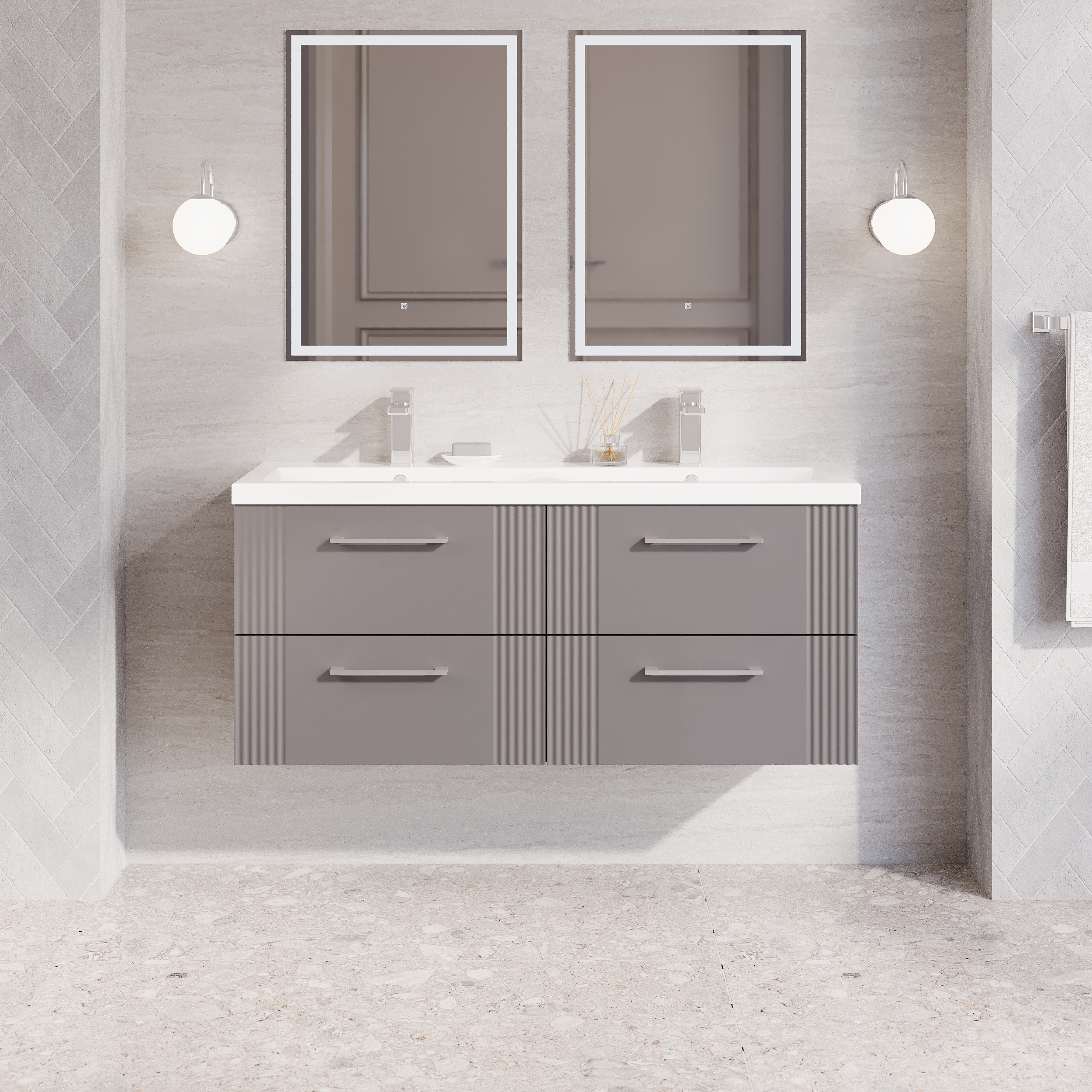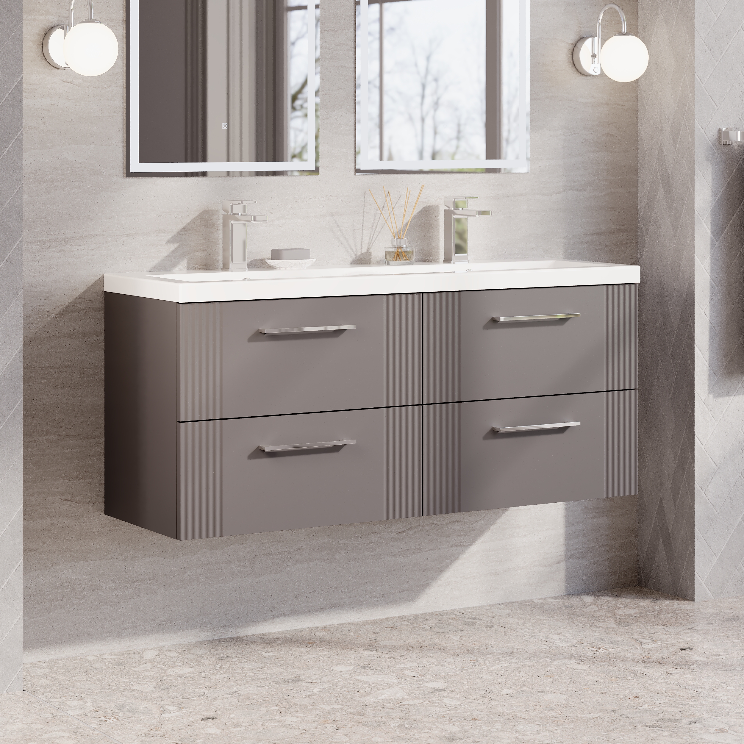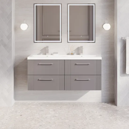nuie Deco 1200mm Wall Hung 4-Drawer Vanity & Double Basin - Satin Grey