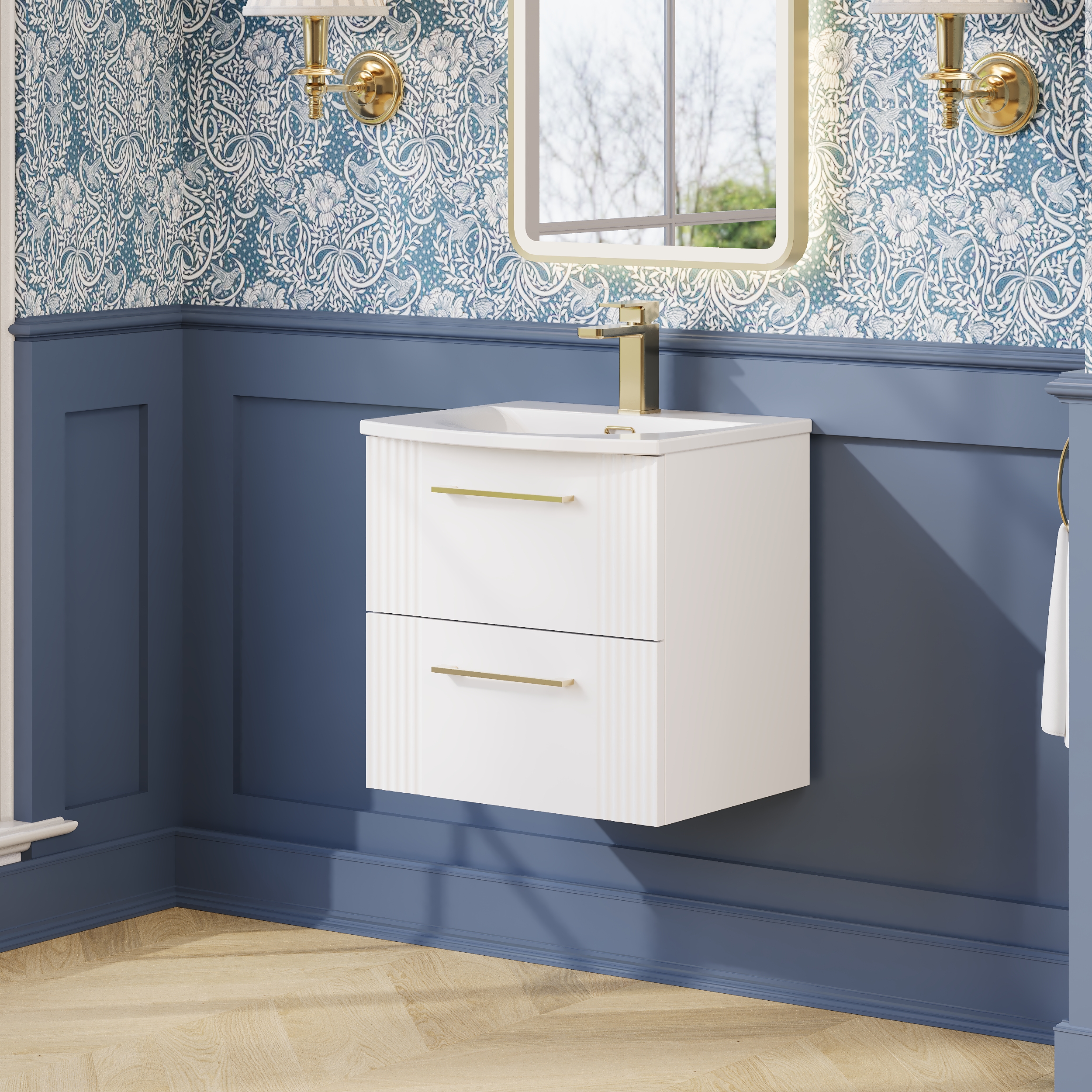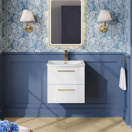 nuie Deco 500mm Wall Hung 2-Drawer Vanity & Curved Basin - Satin White
