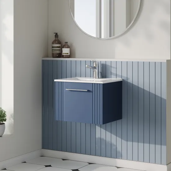 nuie Deco 500mm Wall Hung Single Drawer Vanity & Minimalist Basin - Satin Blue