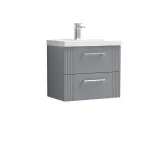 Nuie Deco 600mm Satin Grey Part Fluted Wall Hung 2-Drawer Vanity Unit With Basin