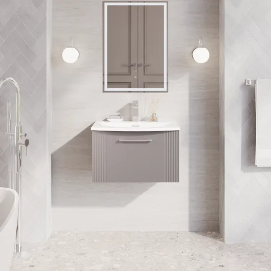 nuie Deco 600mm Wall Hung Single Drawer Vanity & Curved Basin - Satin Grey
