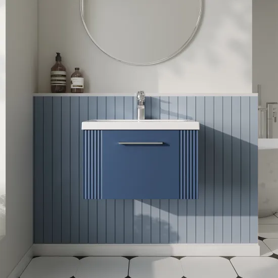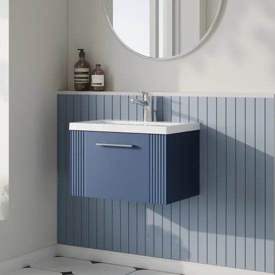nuie Deco 600mm Wall Hung Single Drawer Vanity & Mid-Edge Basin - Satin Blue