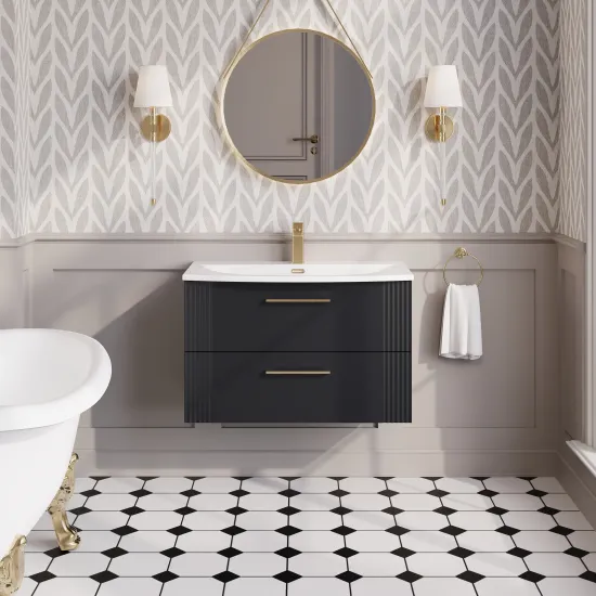 nuie Deco 800mm Wall Hung 2-Drawer Vanity & Curved Basin - Soft Black