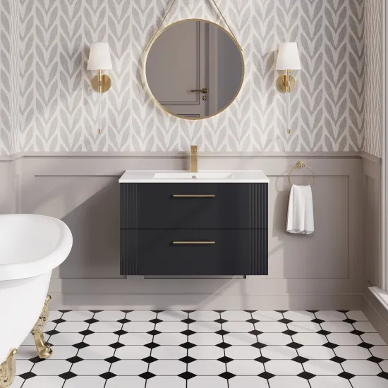 Nuie 800mm Soft Black Part Fluted Wall Hung 2-Drawer Vanity Unit & Basin with Chrome Handles