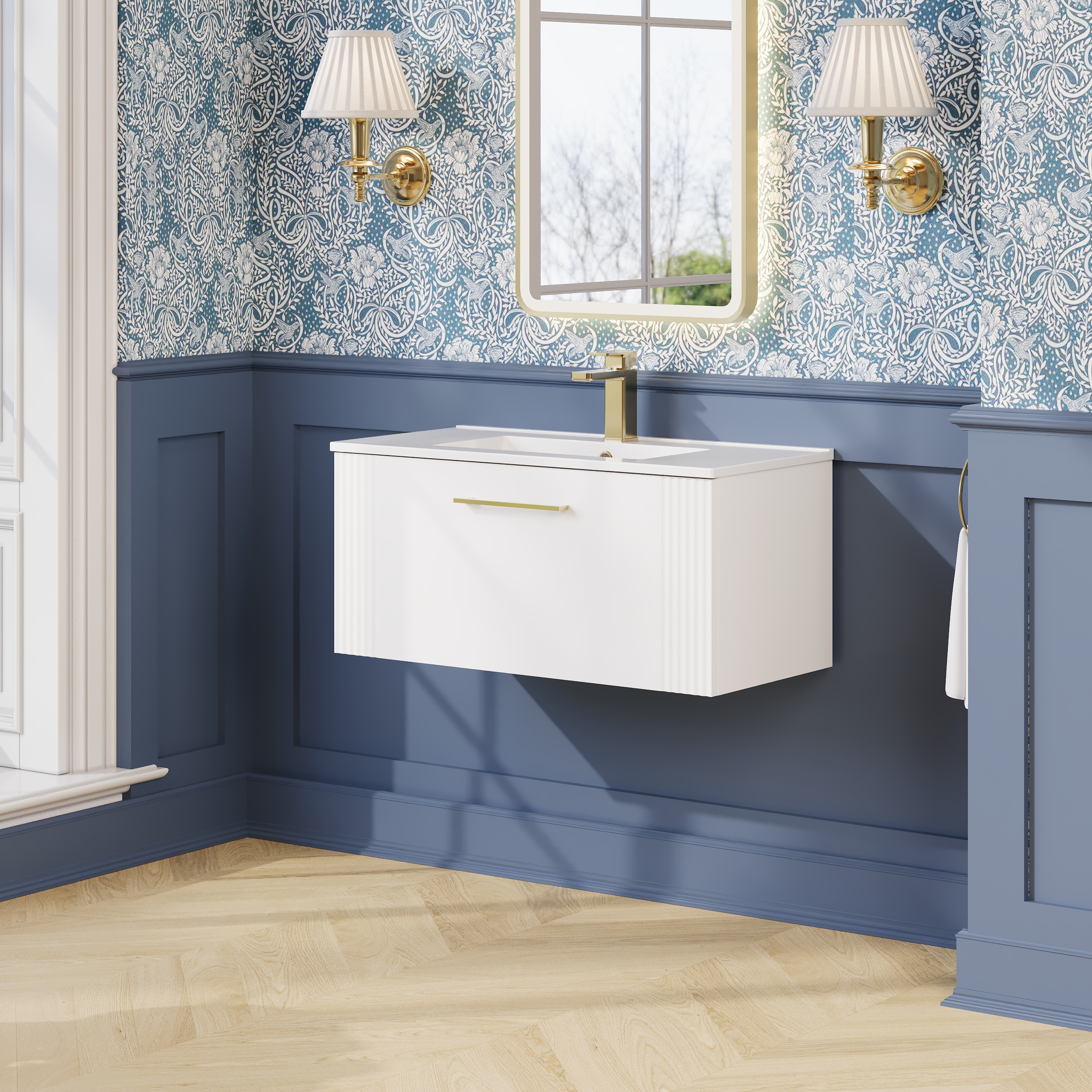 nuie Deco 800mm Wall Hung Single Drawer Vanity & Minimalist Basin - Satin White
