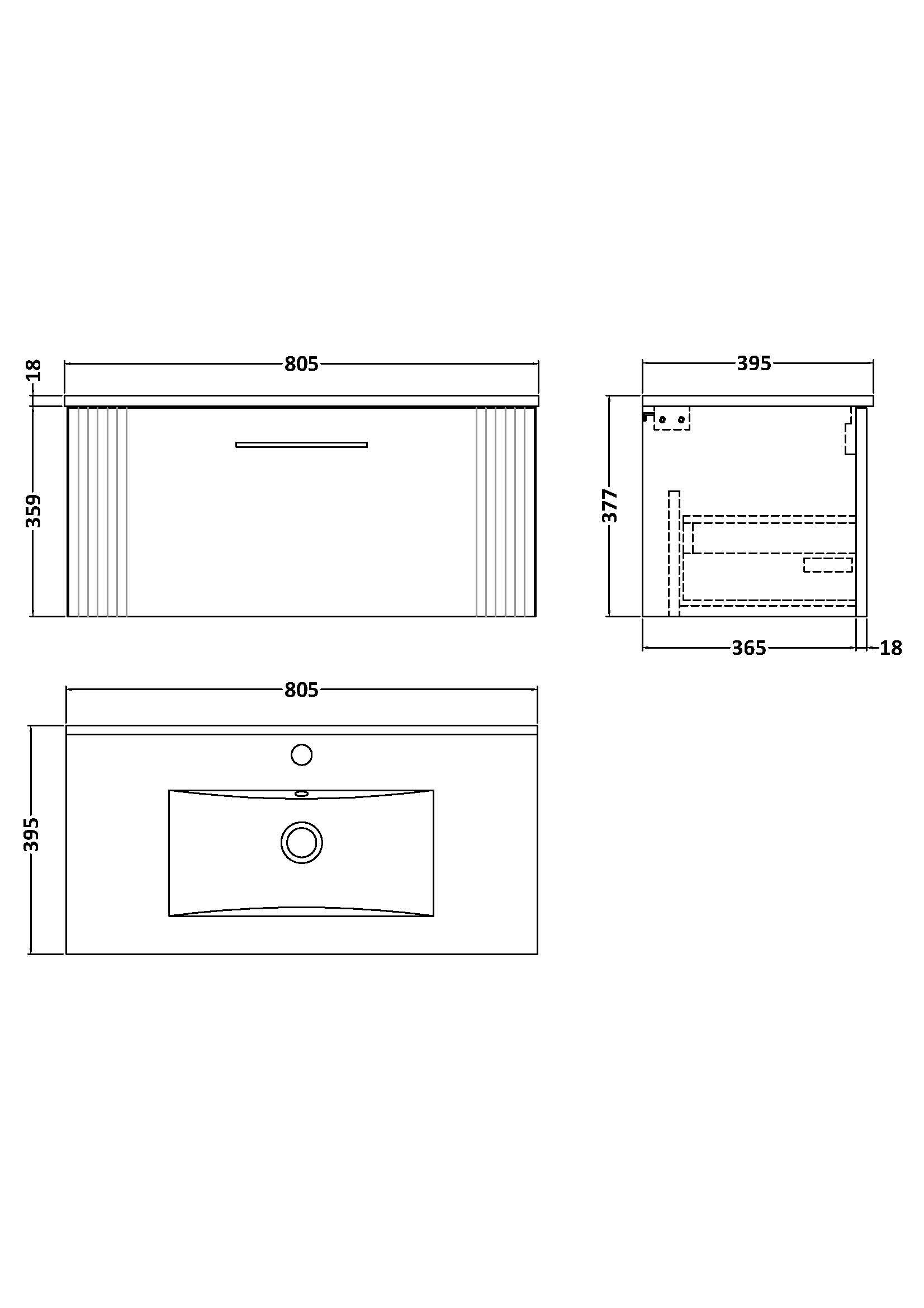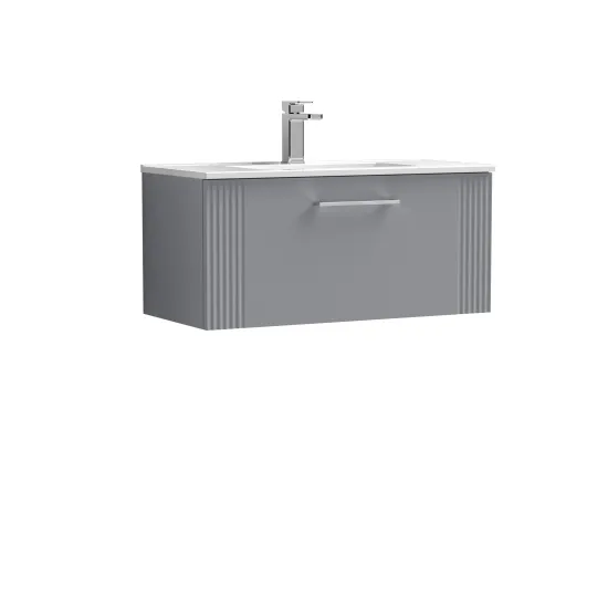nuie Deco 800mm Wall Hung Single Drawer Vanity & Minimalist Basin - Satin Grey