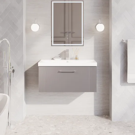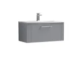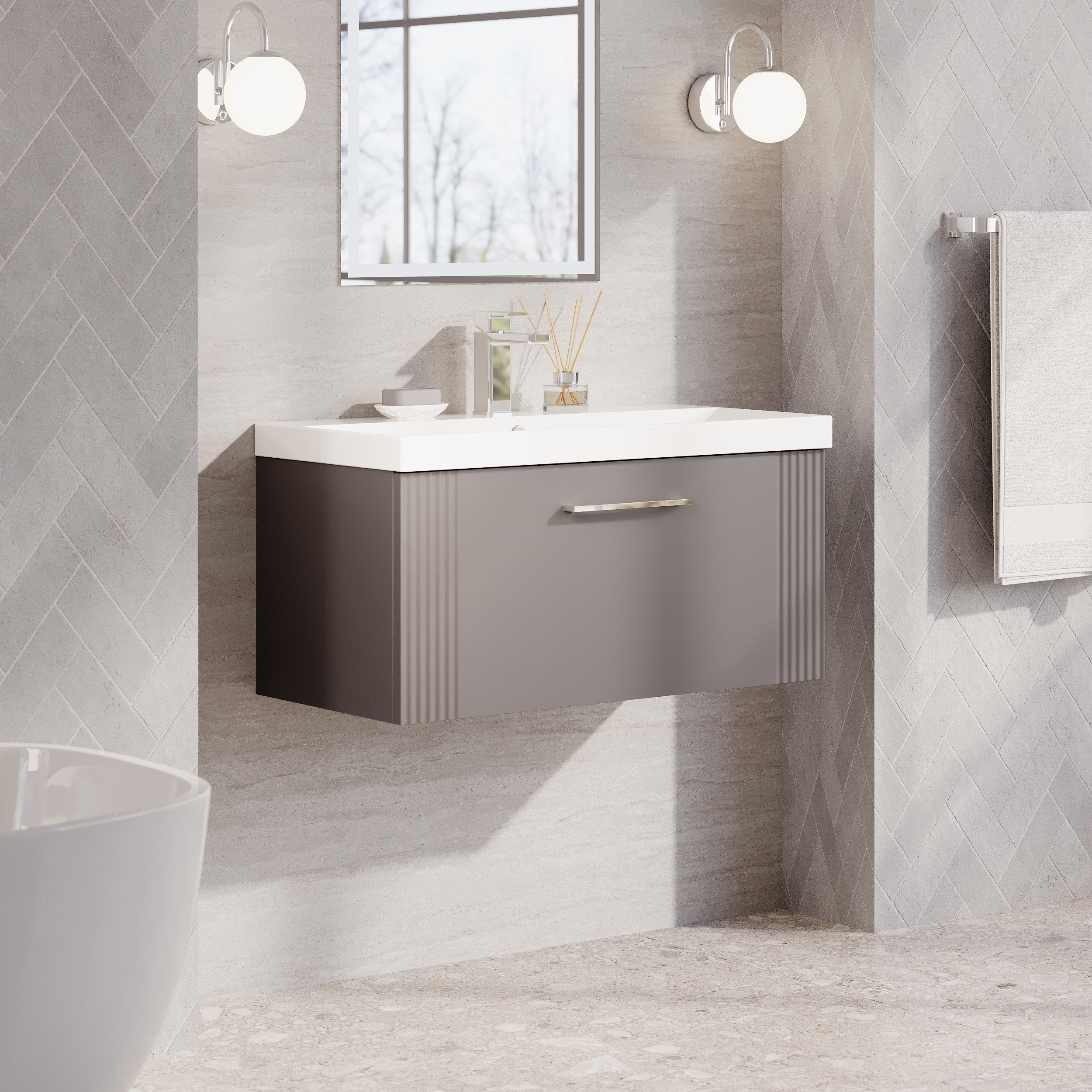 Nuie 800mm Satin Grey Part Fluted Wall Hung Single Drawer Vanity Unit With Basin & Chrome Handle