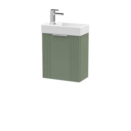 nuie Deco Compact Wall Hung 1 Door Vanity Basin Unit & Ceramic Basin, 400mm - Satin Green
