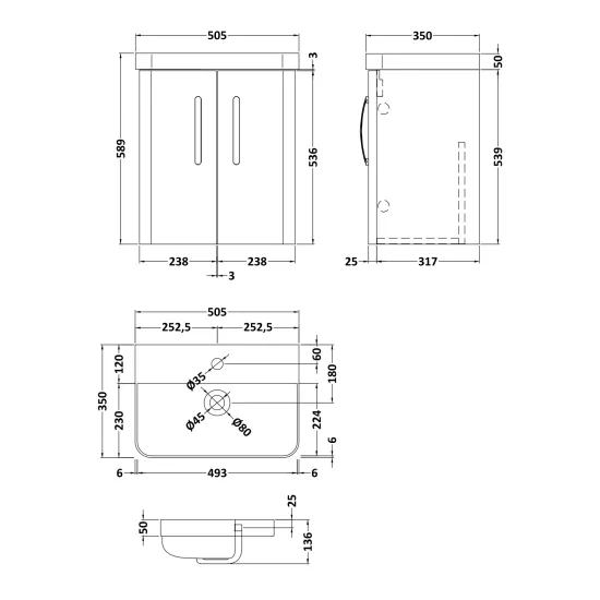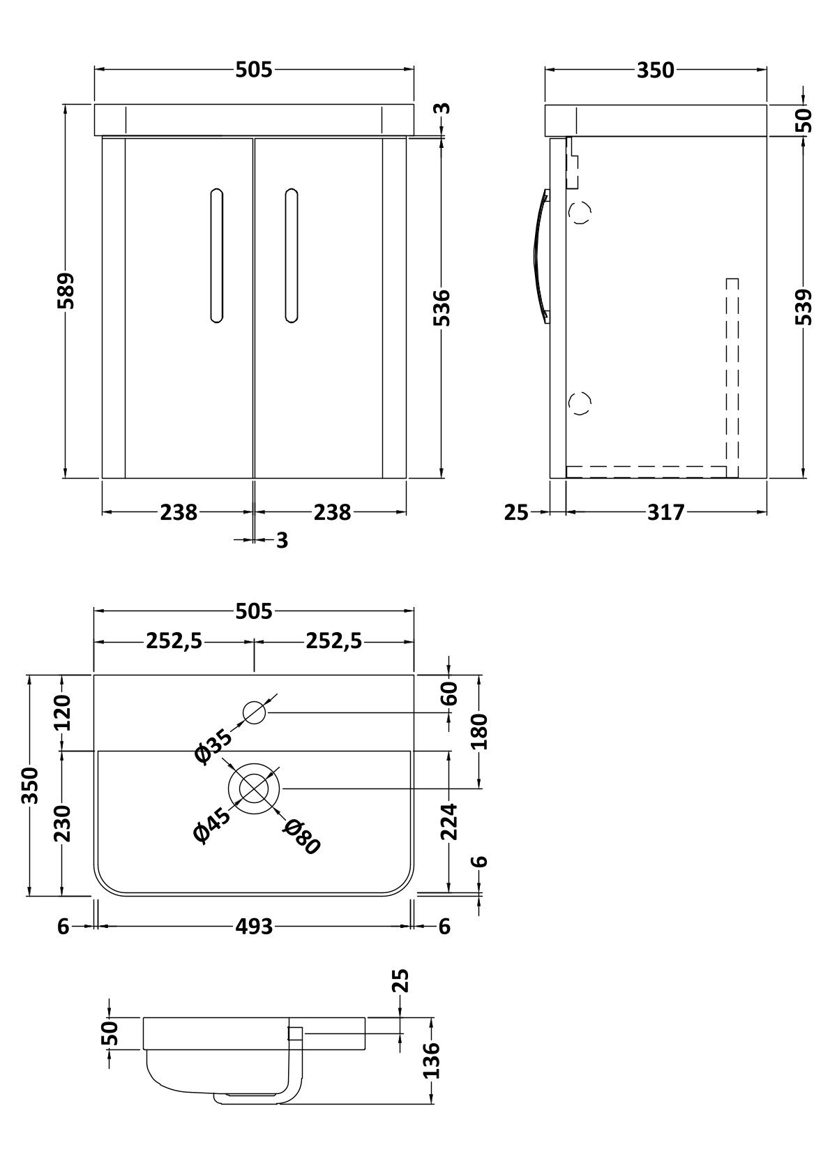 Arley Direction 500mm Wall Hung Unit with Basin - Gloss Grey