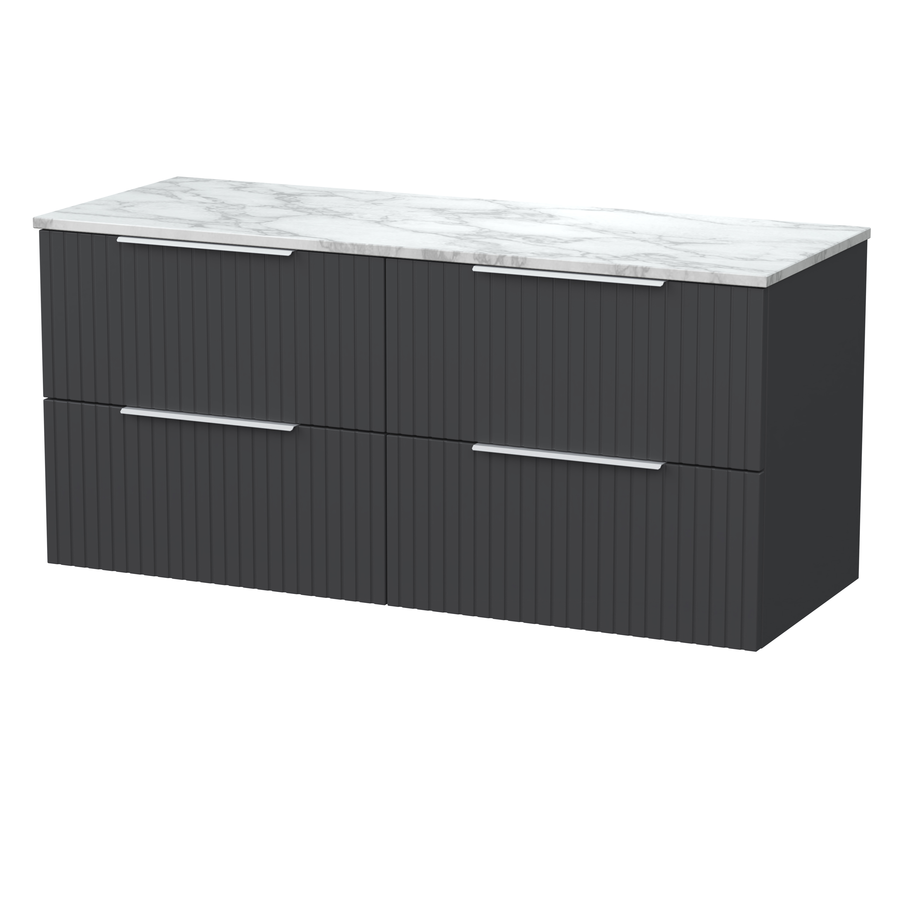 nuie Lux Flume 600mm 2- Drawer Wall Hung Unit with Carrera Marble Top - Soft Black