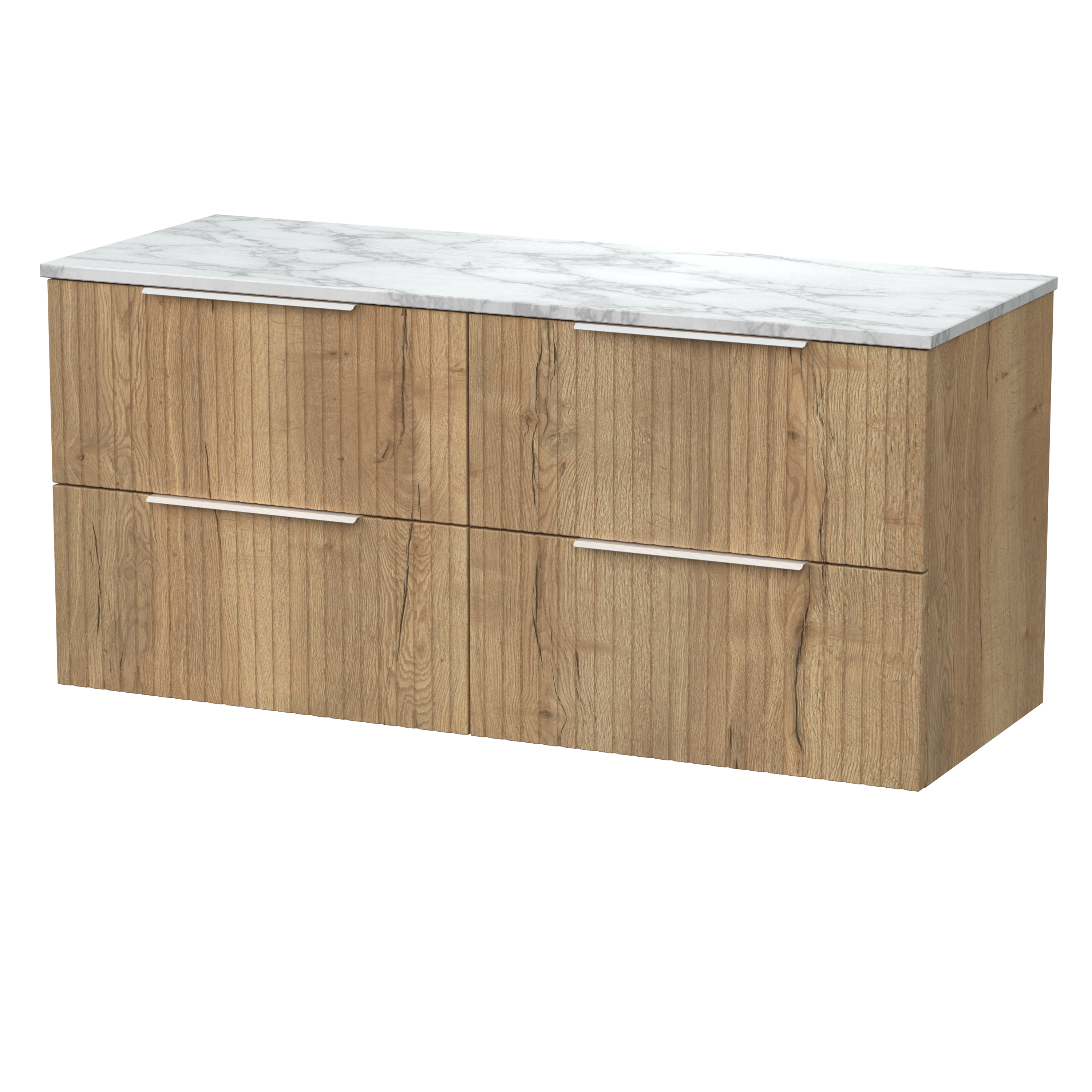 nuie Lux Flume 600mm 2- Drawer Wall Hung Unit with Carrera Marble Top - Autumn Oak
