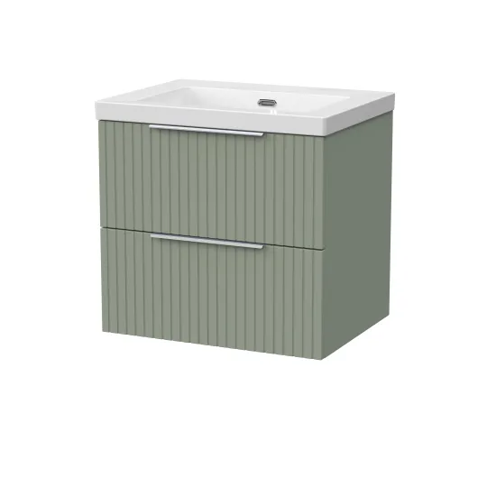 nuie Lux Flume 600mm 2- Drawer Wall Hung Unit with Contemporary Fireclay Basin - 0 Tap Holes - Fern Green