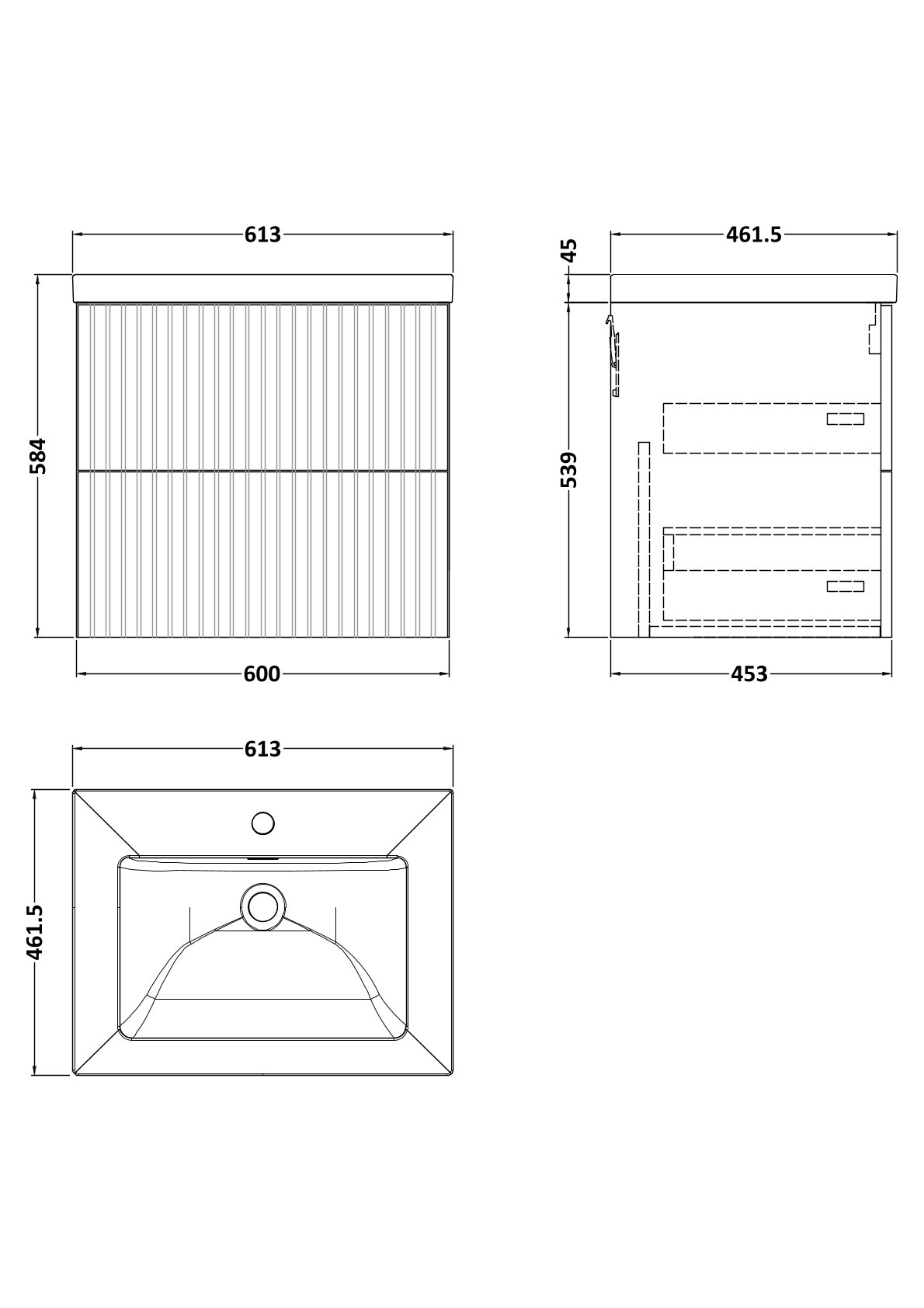Flume 600mm 2- Drawer Wall Hung Unit with Contemporary Fireclay Basin - 1 Tap Hole