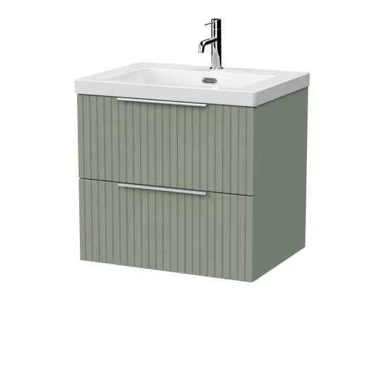 nuie Lux Flume 600mm 2- Drawer Wall Hung Unit with Contemporary Fireclay Basin - 1 Tap Hole - Fern Green