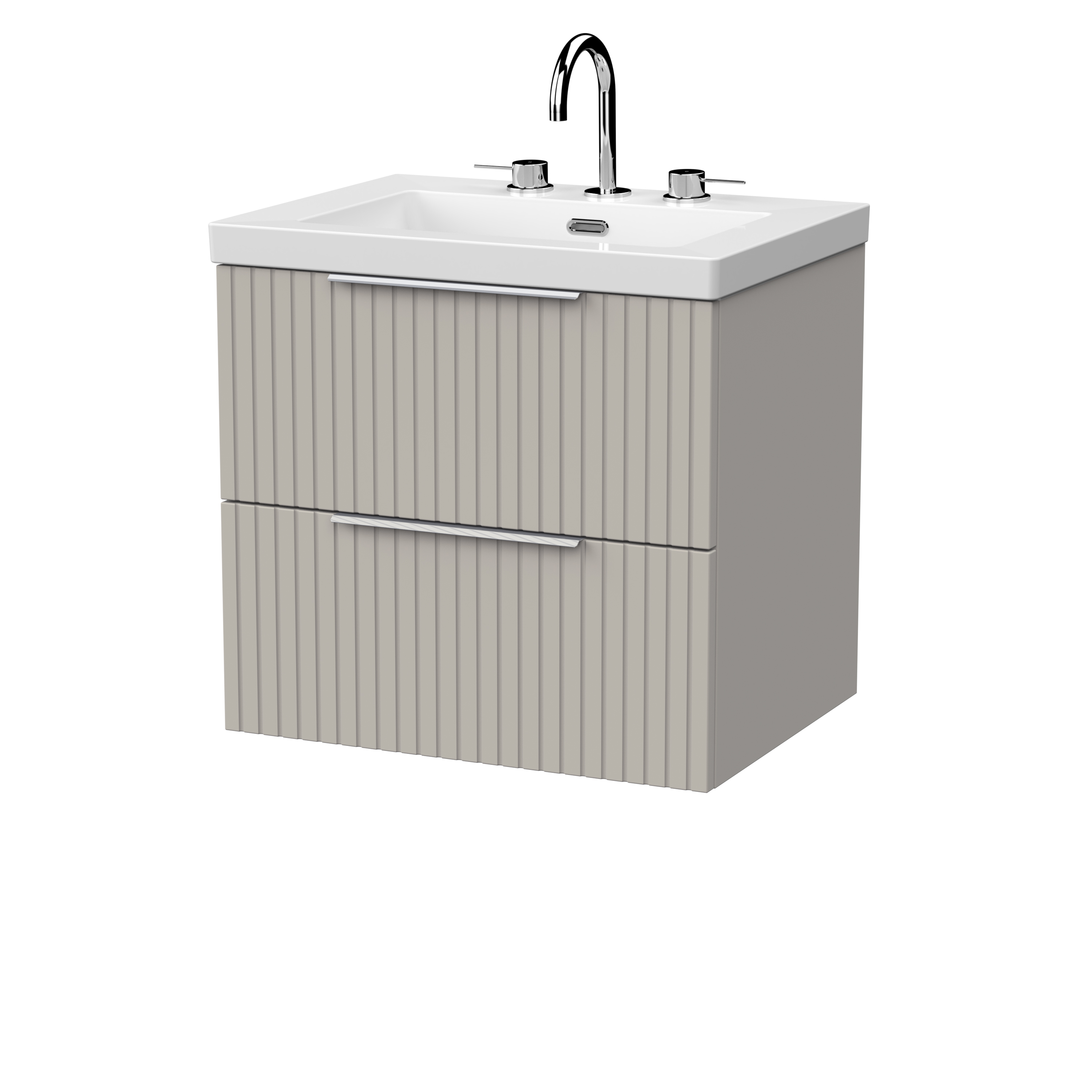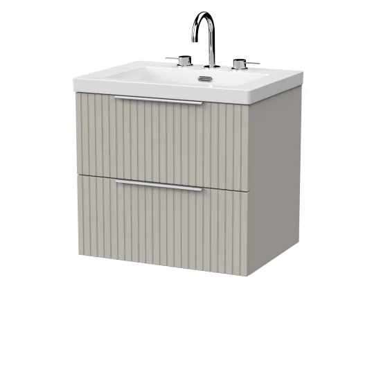 nuie Lux Flume 600mm 2- Drawer Wall Hung Unit with Contemporary Fireclay Basin - 3 Tap Holes - Pebble Grey