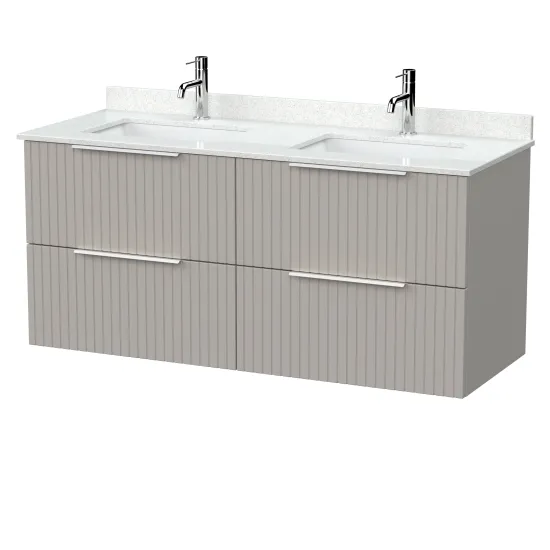 nuie Lux Flume 600mm 2- Drawer Wall Hung Unit with Double Bowl Marble Top 1 Tap Hole in White - Pebble Grey